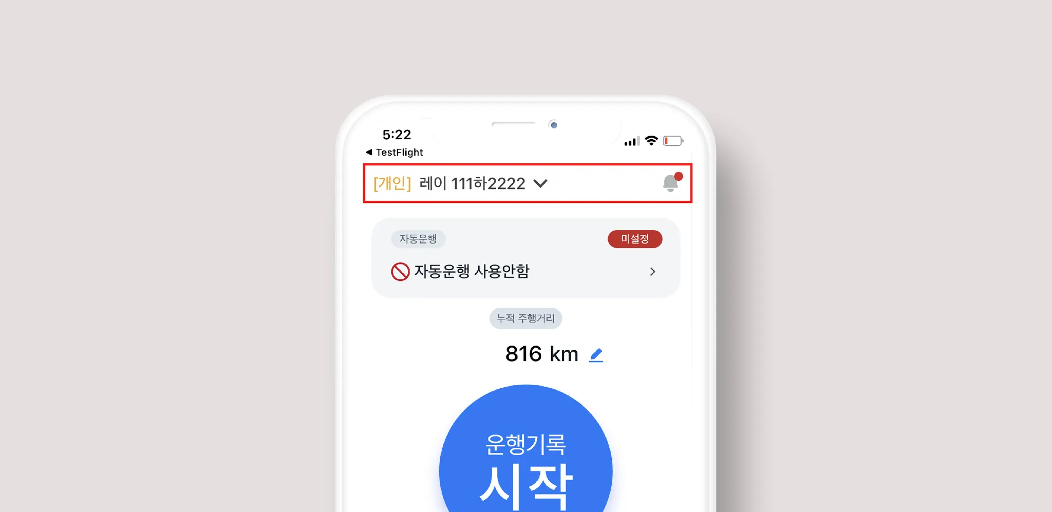 *개인차량 등록버튼이 안보인다면, 어플을 완전히 종료 후 다시 실행해주세요!