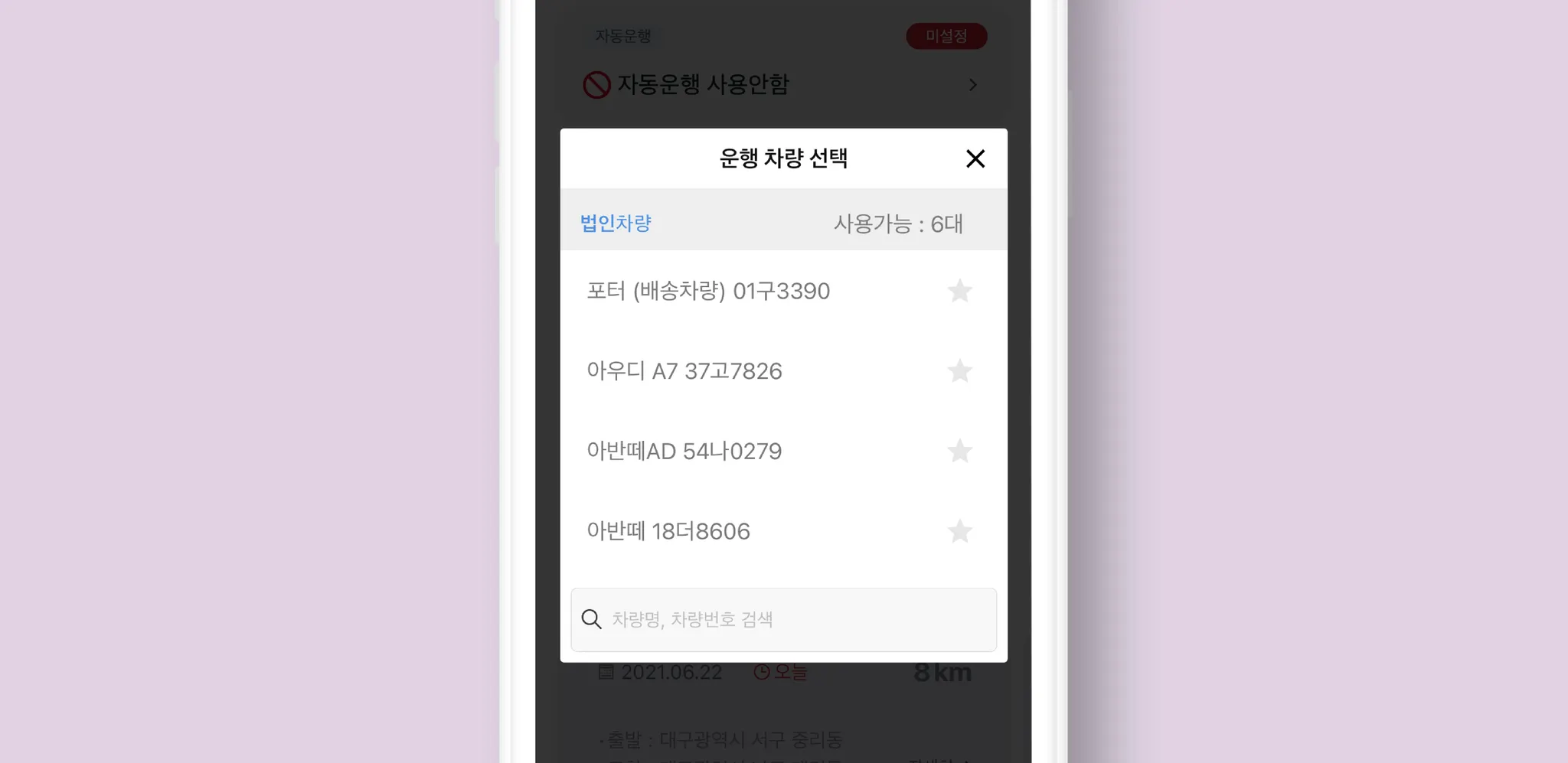 특정 부서/ 운전자만 차량 선택하고 운행기록 할 수 있도록 차량 권한 설정할 수 있어요! (PLUS 기능)