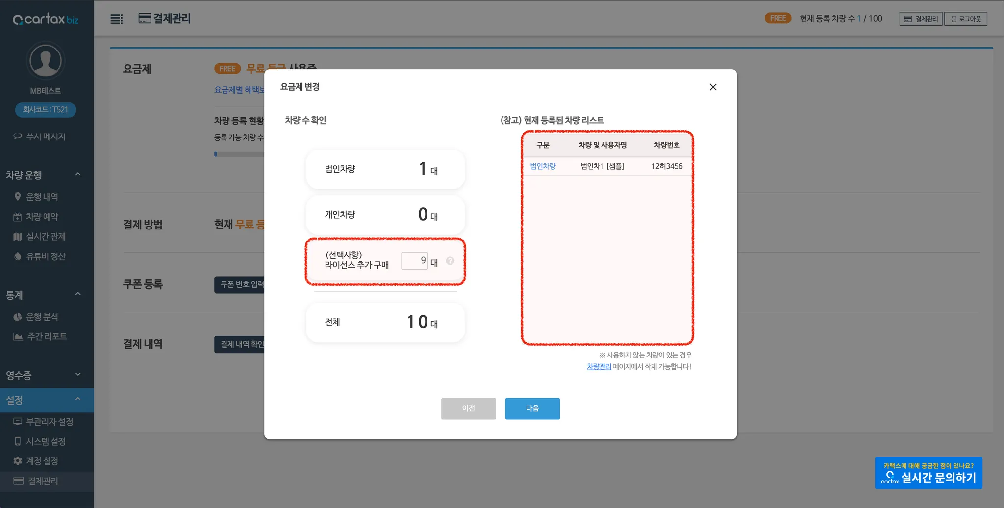 - 차량 구입이 예정되어 있거나 라이선스를 더 구매하실 경우 추가 라이선스에 입력해주세요 |