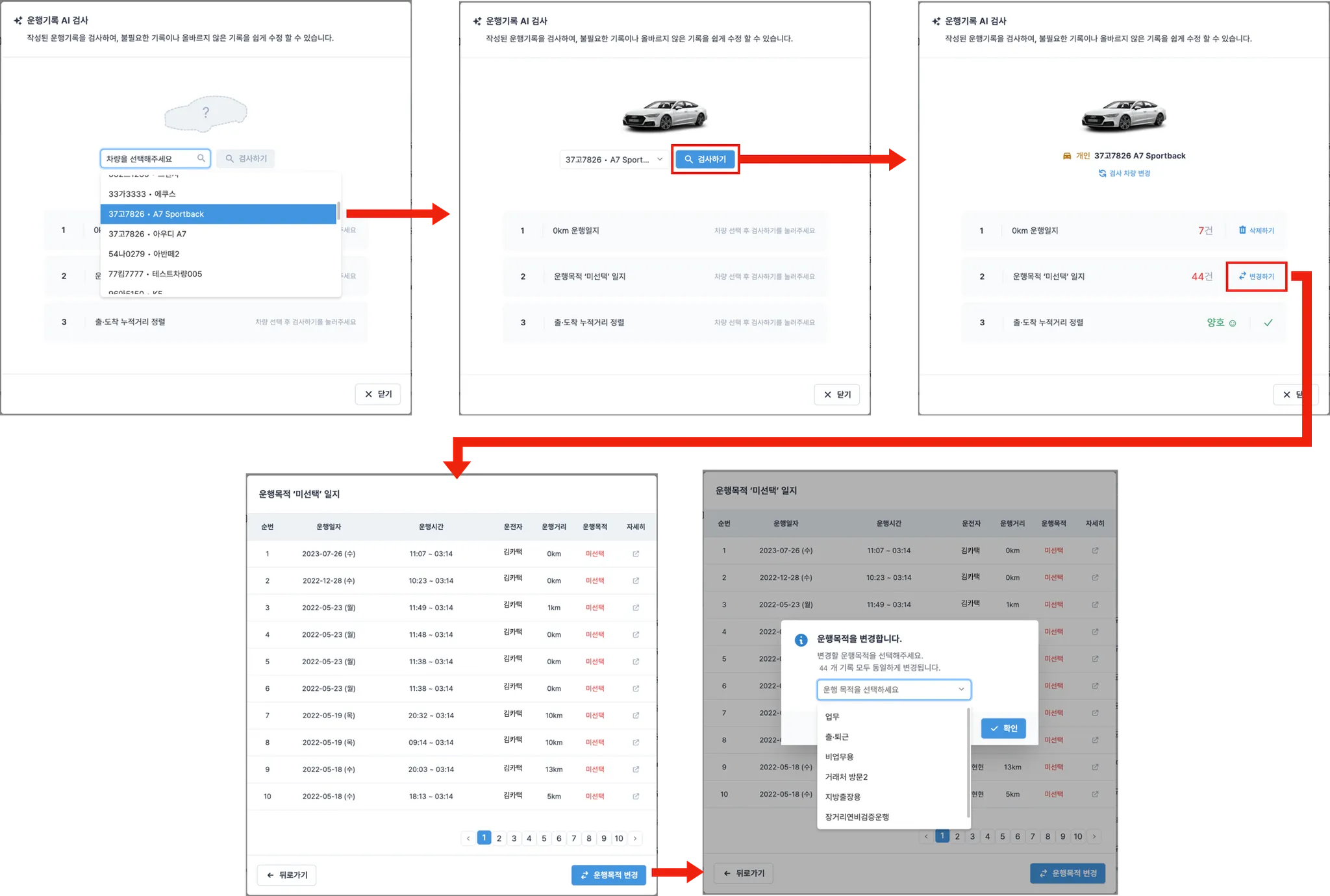 2-2. 운행목적 ‘미선택’ 일지 검사 및 운행목적 변경
