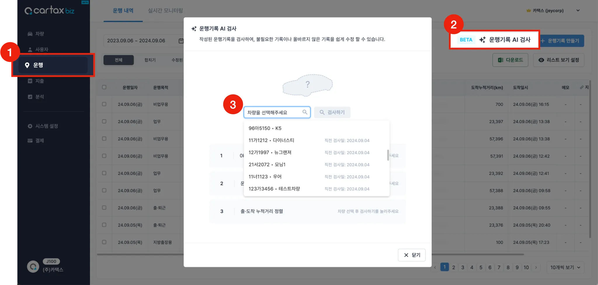 운행일지 AI 검사 기능은 한시적 베타(Beta) 기능으로 선보이게 되었습니다. 따라서 베타 기간 동안은 월 3번 사용 제한이 있는점 많은 양해 부탁드립니다.