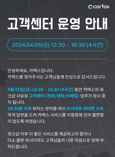 고객센터는 4월 05일 (금) 16:30이후 부터 정상 운영됩니다.