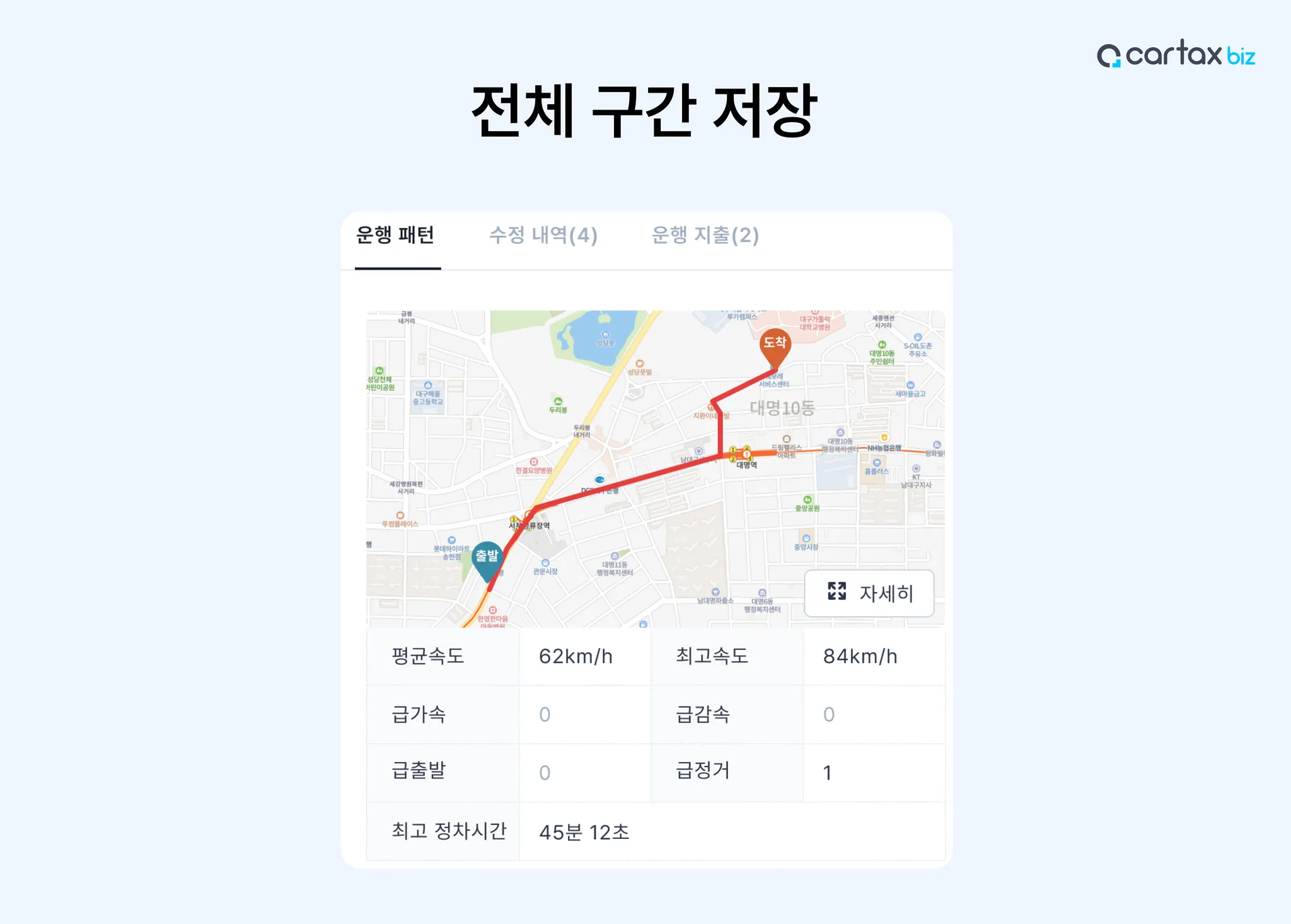 전체 운행구간의 기록을 초 단위로 기록해 핀을 찍어 이동 거리를 보여드립니다.