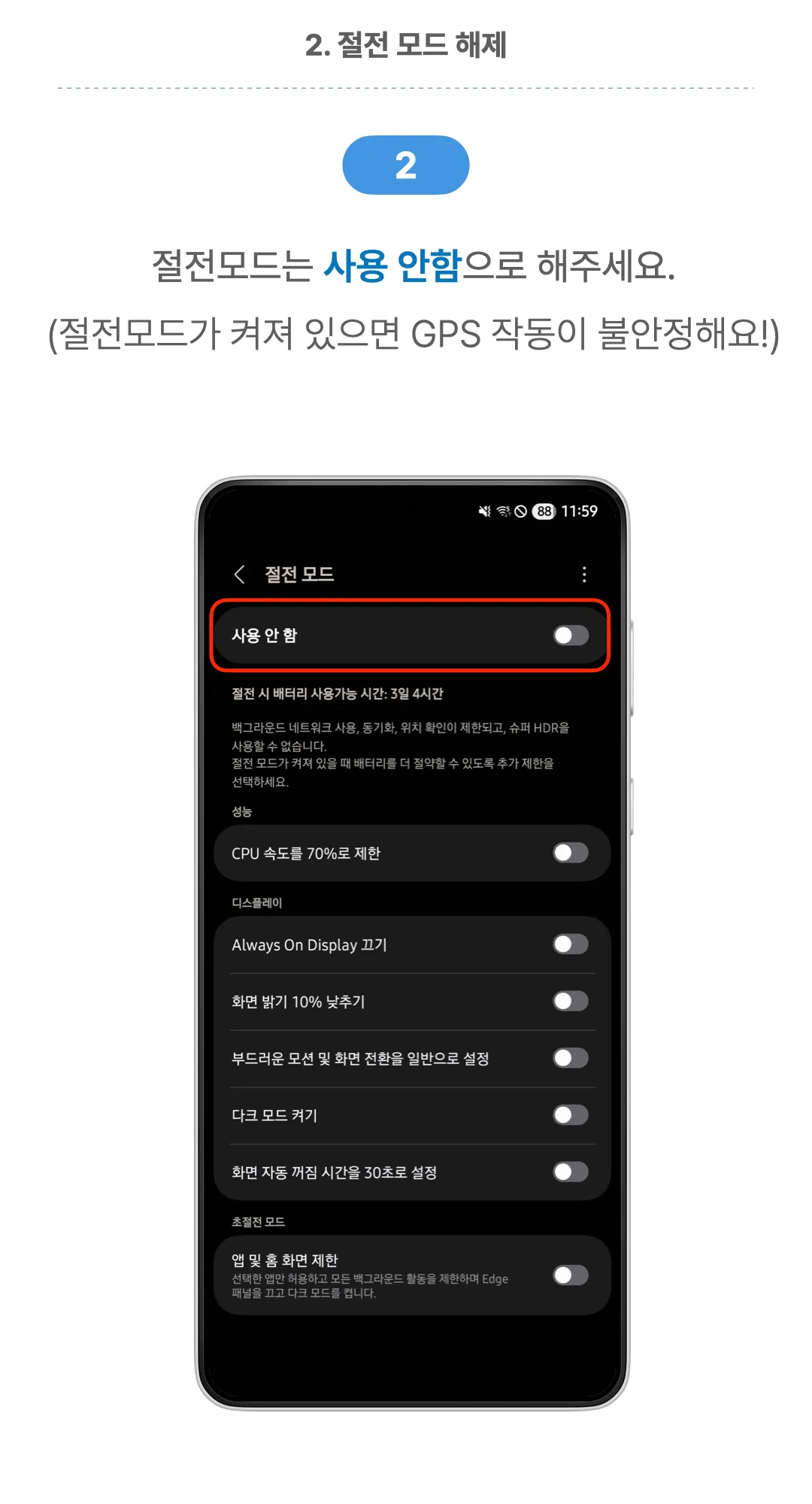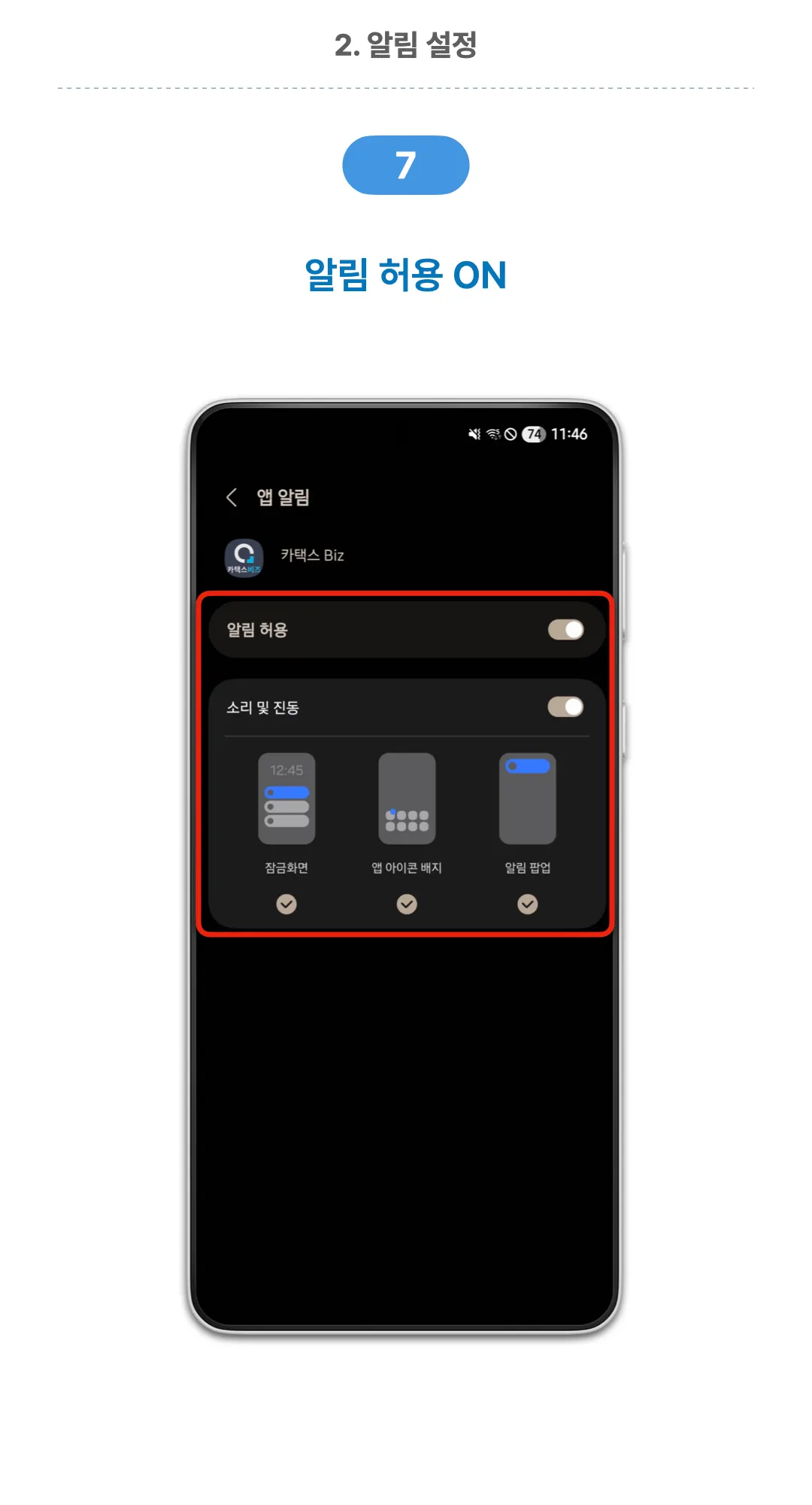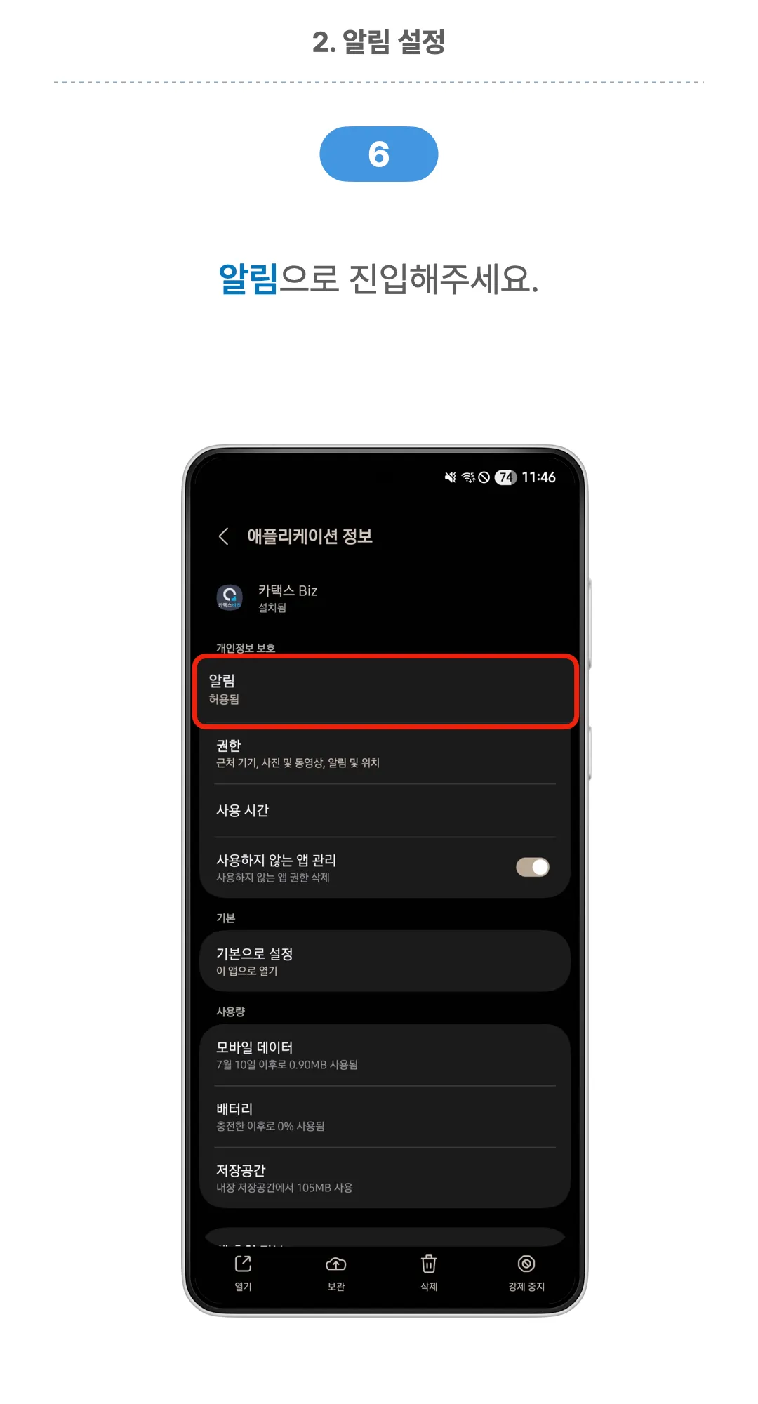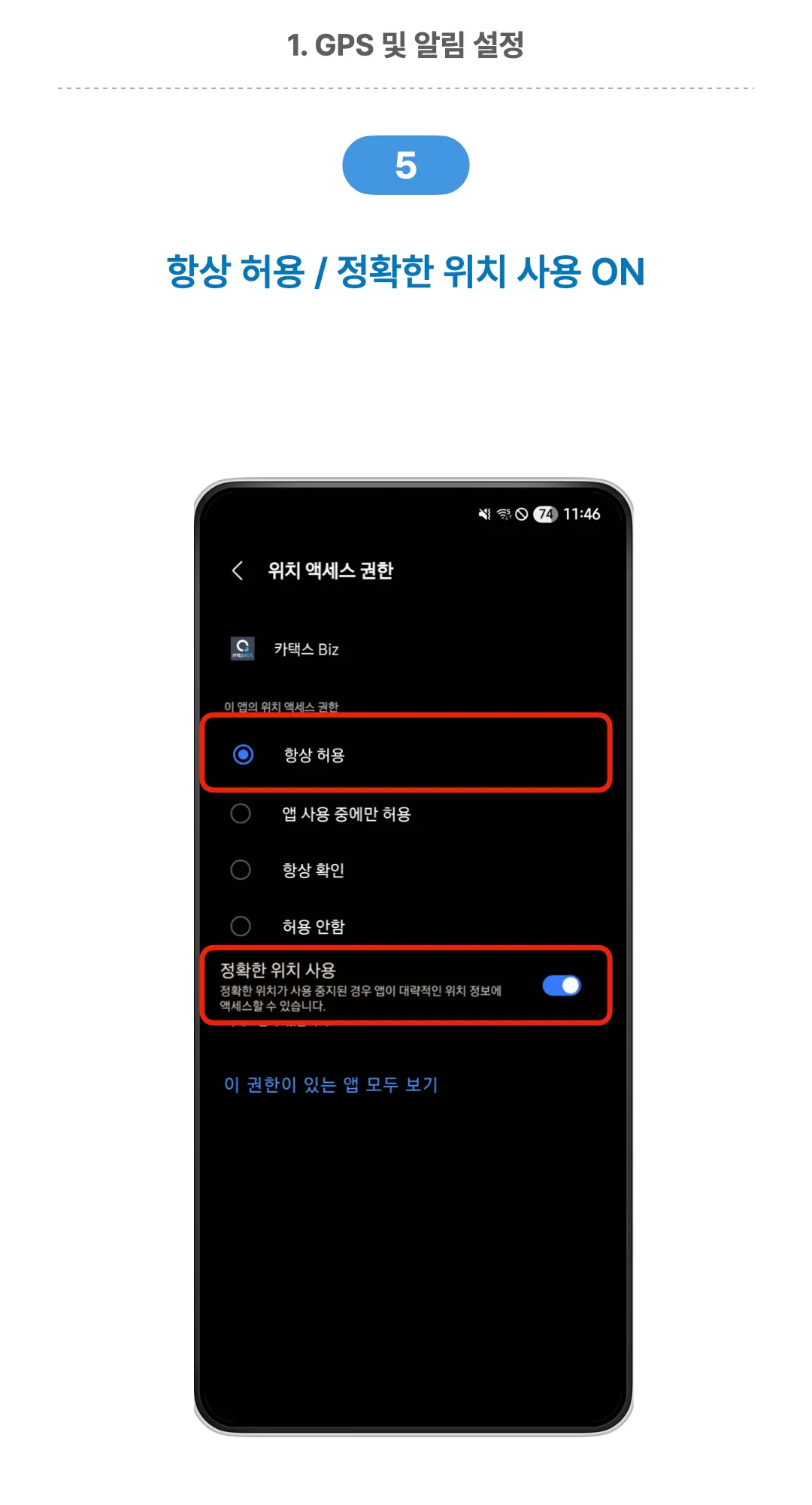 대부분 안드로이드(갤럭시) 기종에서 권한 설정 문제가 많기에 다음의 이미지를 참고해주시기 바랍니다.