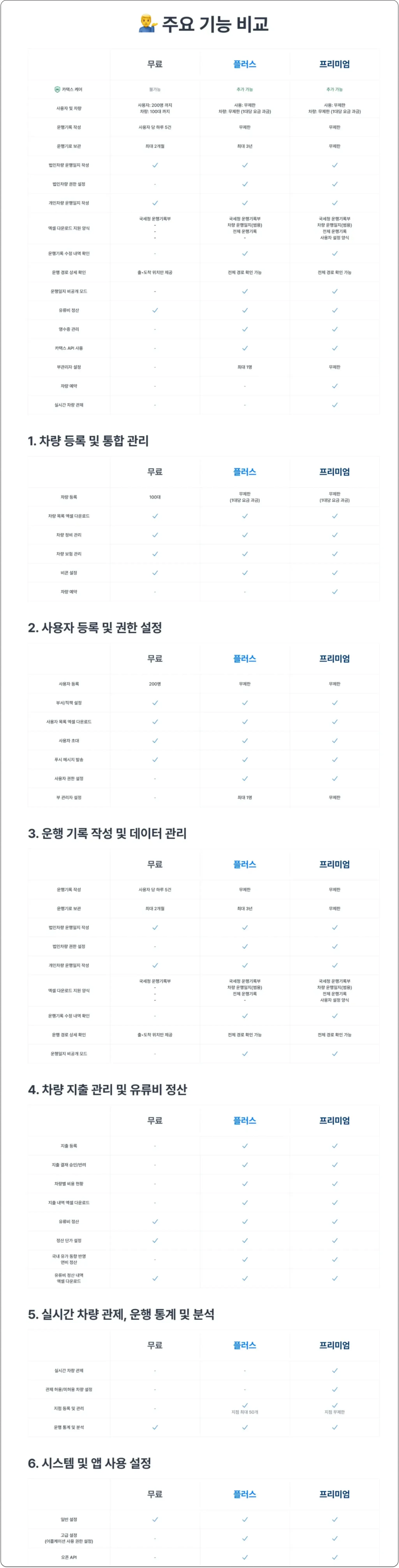 플러스, 프리미엄 요금제는 기능적인 차이가 존재하기에 상세 기능에 대해서는 다음의 이미지를 확인해주시기 바랍니다.