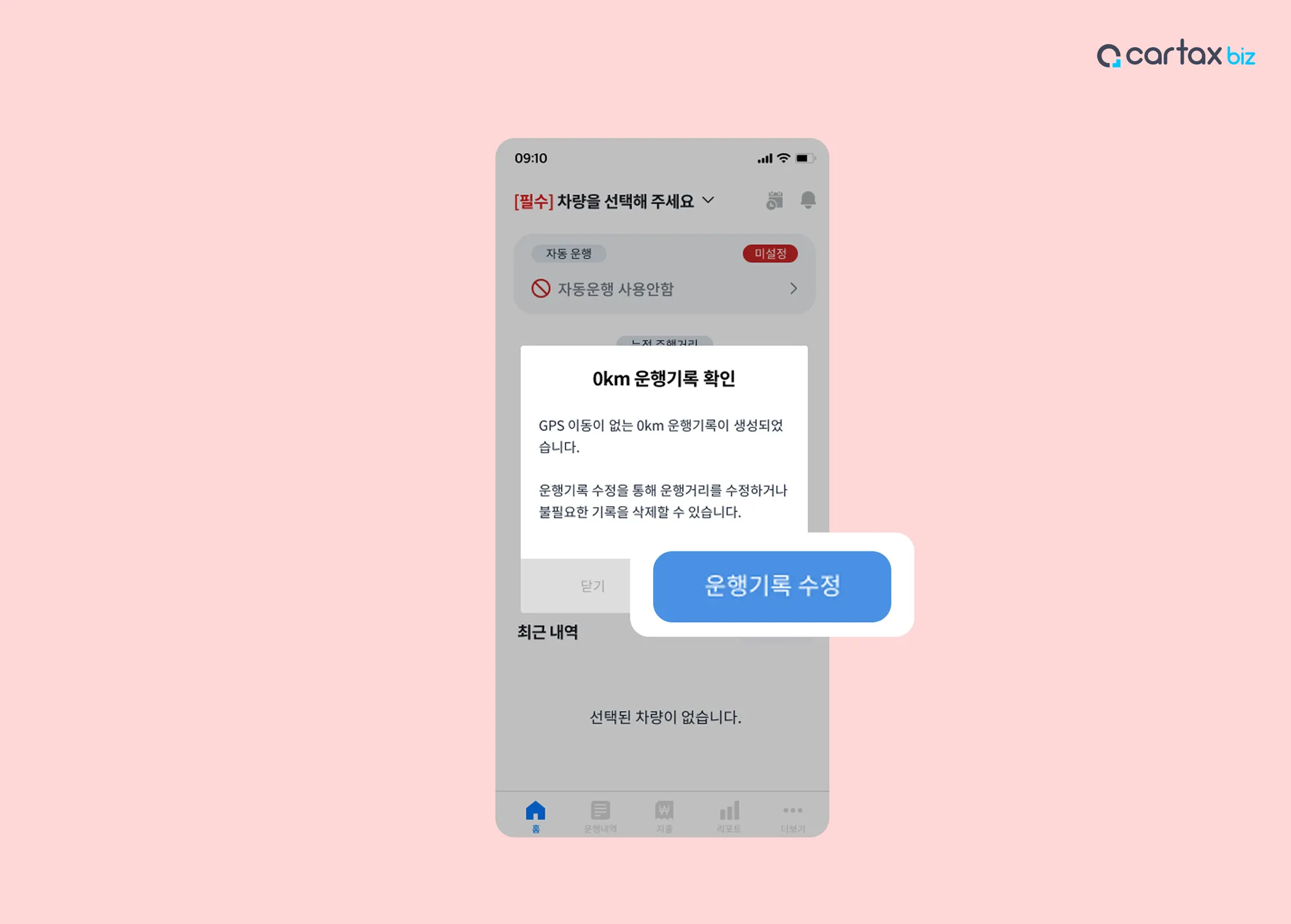 수정 권한이 없는 경우 기업 관리자에게 운행기록 생성을 요청해주세요.