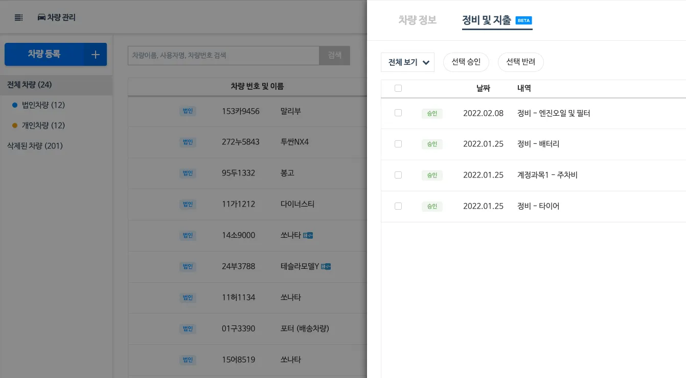 2. 내용: 차량관리 페이지 내 차량 정비 기능의 정식 서비스 전환