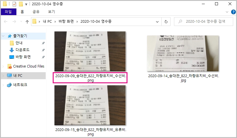 2. 영수증 사진 일괄 다운로드