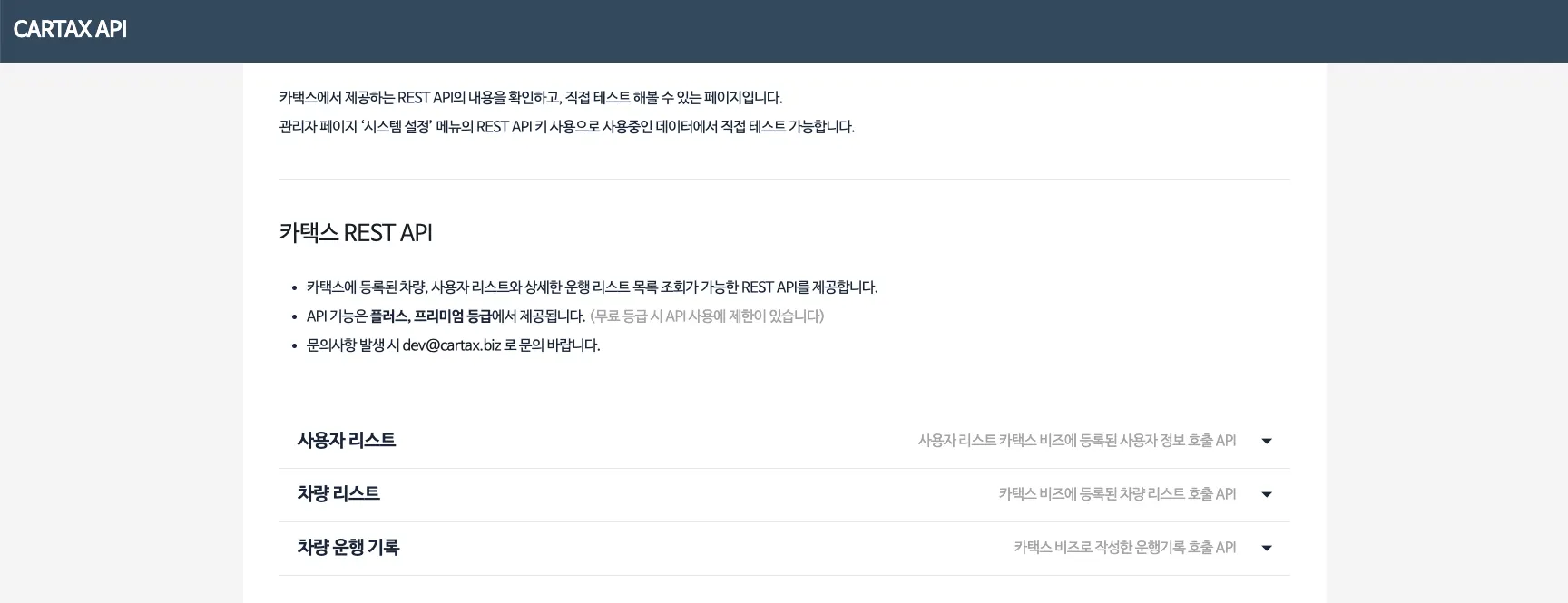 API 기능은 플러스 등급 이상 사용하고 계시는 기업이라면 제한 없이 자유롭게 사용하실 수 있으며, API를 실제 개발하시는 개발자 분들을 위해 직관적이고 실용적인 가이드 페이지를 같이 준비했습니다.