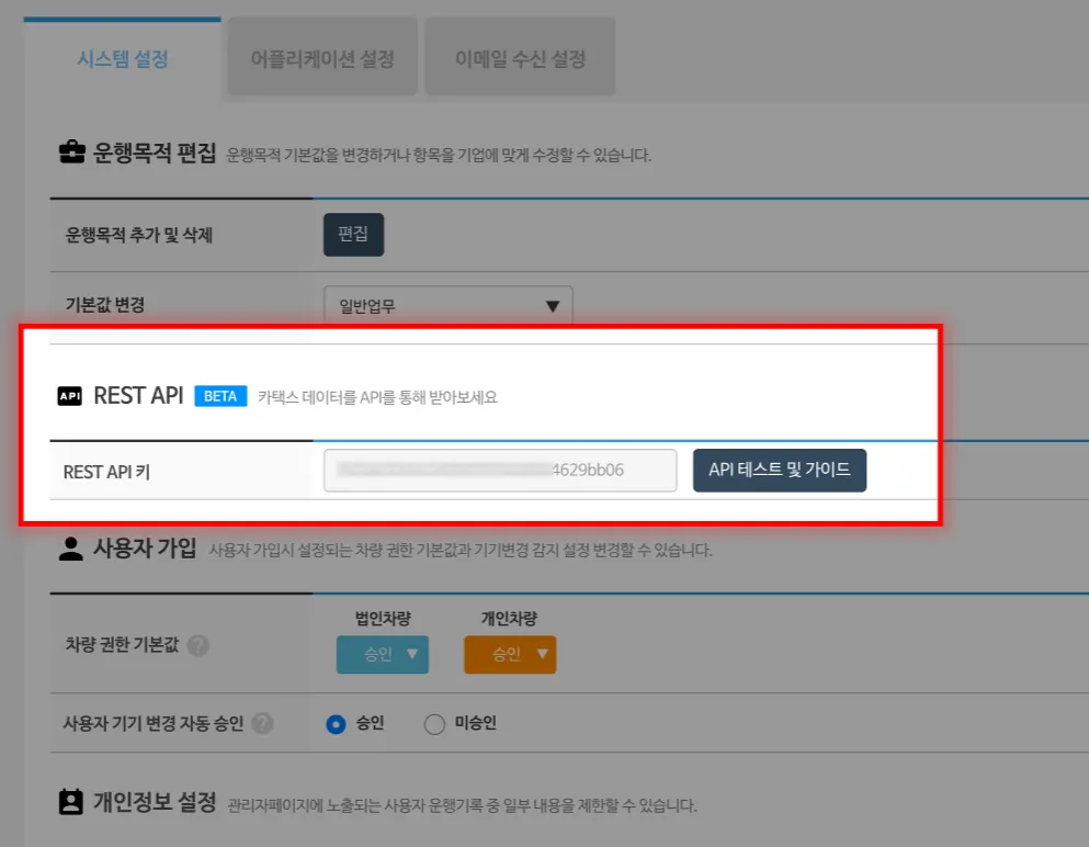 - API 사용 키 발급 (시스템 설정 페이지에서 확인 가능)