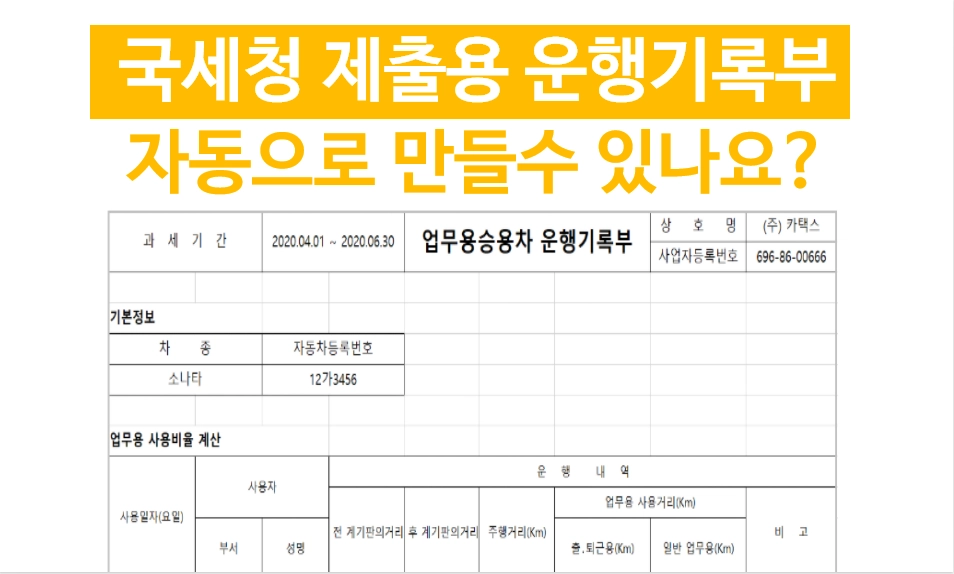 관리자가 직접 만든 운행목적의 운행기록은 국세청양식에서 '일반 업무용'으로 포함됩니다.