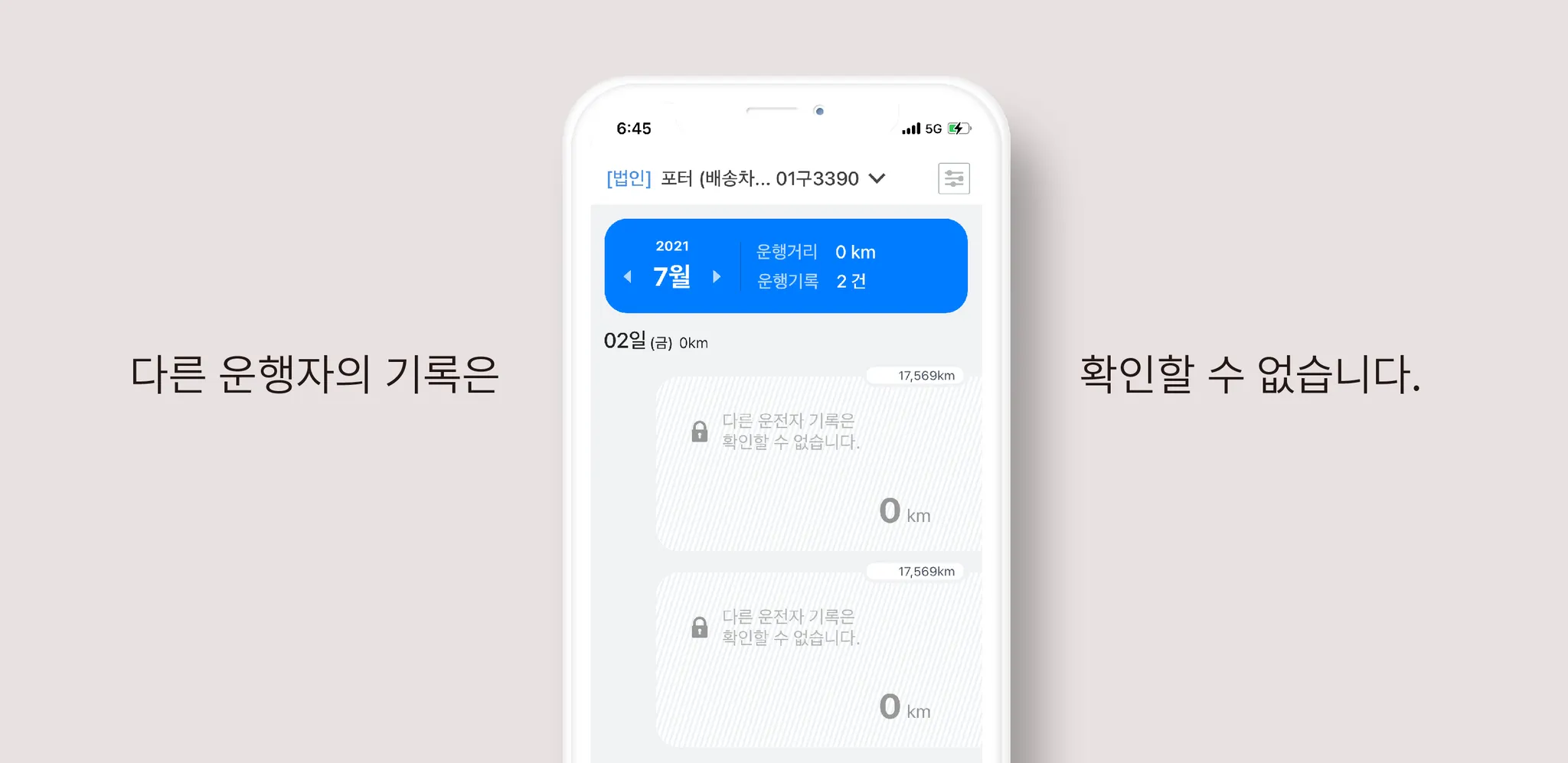 앱(APP)에서 타 운전자의 기록은 확인할 수 없습니다.