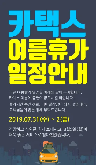 아래와 같이 하계 휴가 기간동안 고객센터 운영이 이루어지지 않아 사전 안내드립니다.