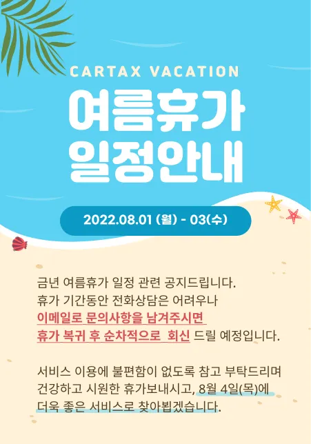 아래와 같이 2022 하계 휴가 일정으로 고객센터 운영이 이루어지지 않아 사전 안내드립니다.