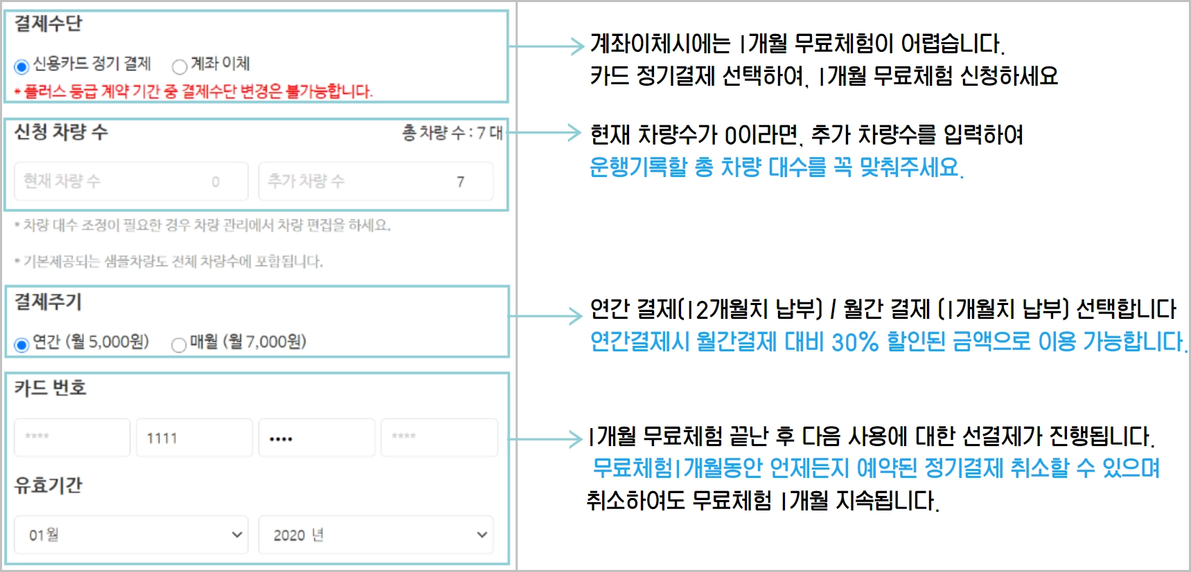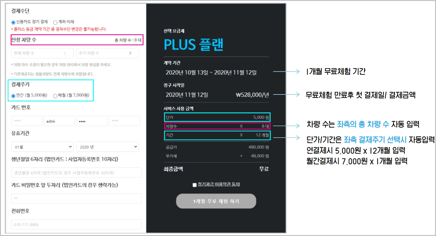 카드 정기결제 신청시, 1개월 무료체험 가능합니다.