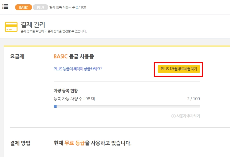 아래와 같이, PLUS등급 무료체험 버튼을 클릭합니다.