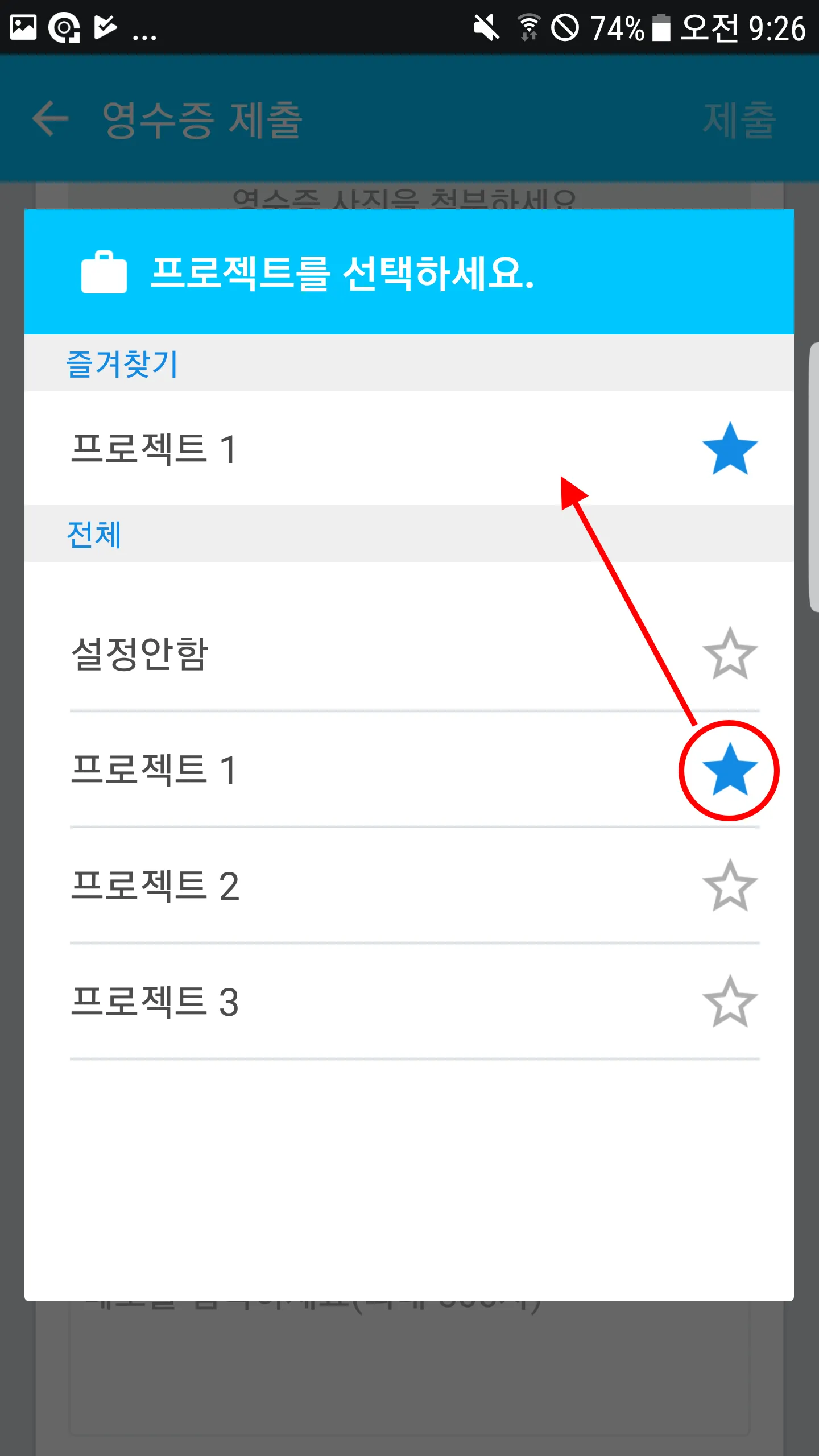 1. 영수증 등록시 지출항목 및 프로젝트 즐겨찾기 기능 추가
