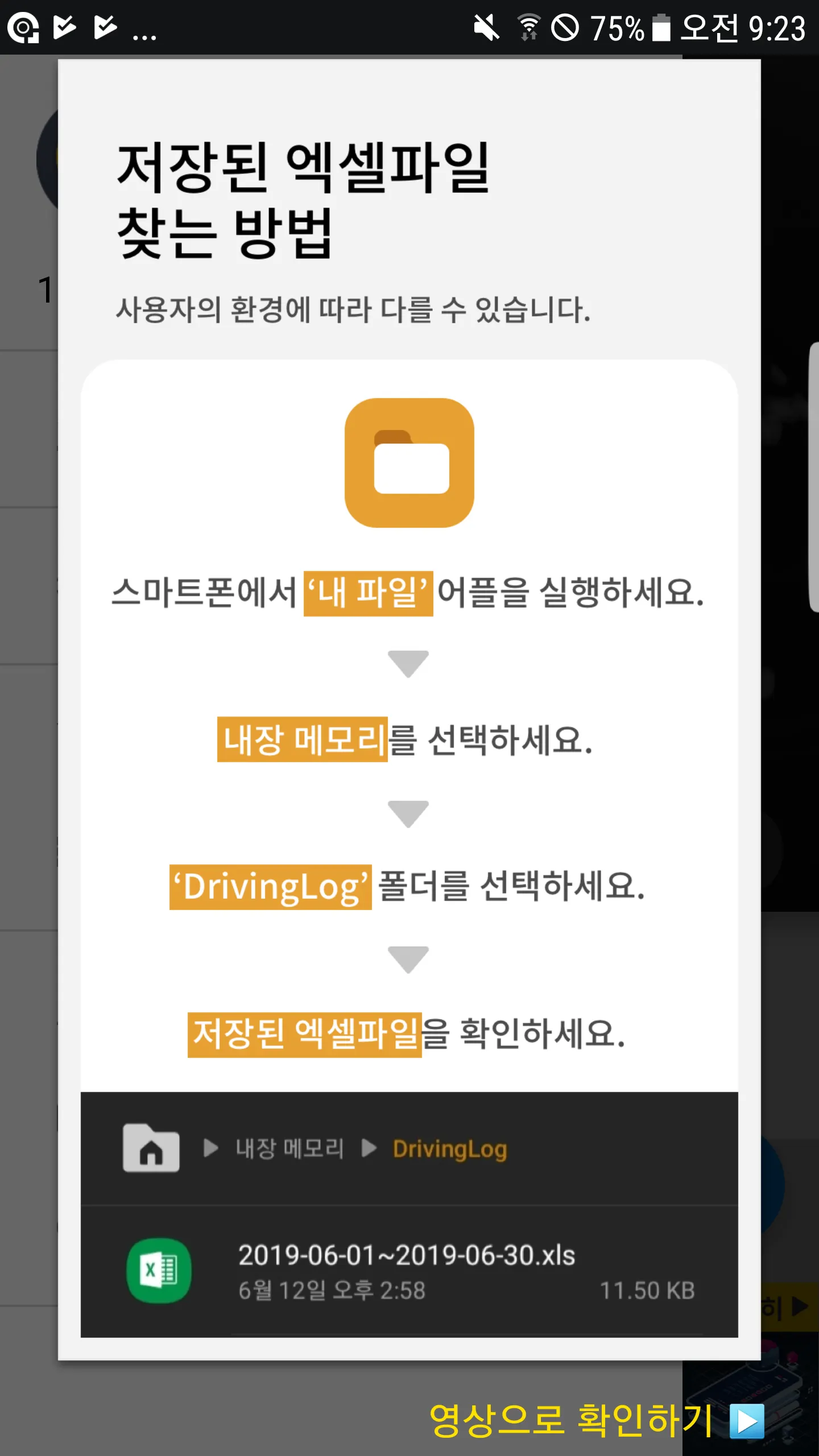 2. 운행일지 엑셀 저장 시 저장위치 가이드 표시 (안드로이드만 해당)