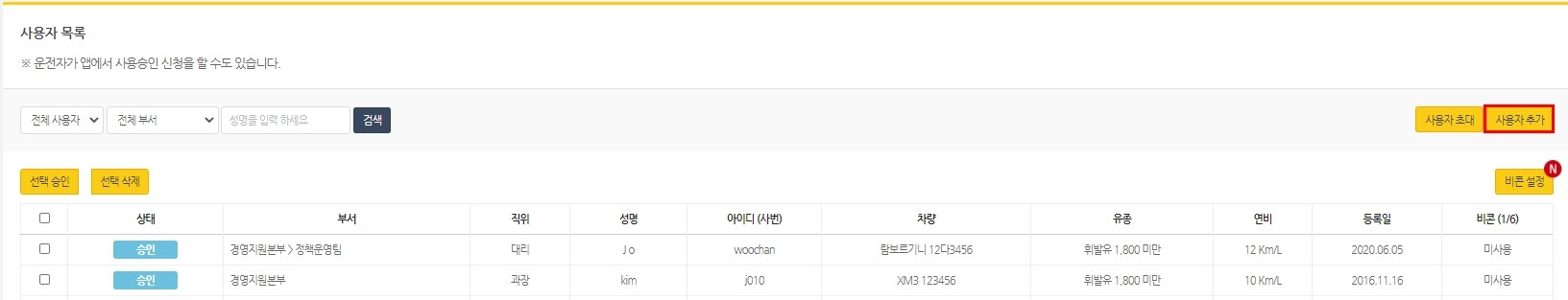 모든 운행 직원은 각각 어플 사용 계정을 만들어야 합니다.