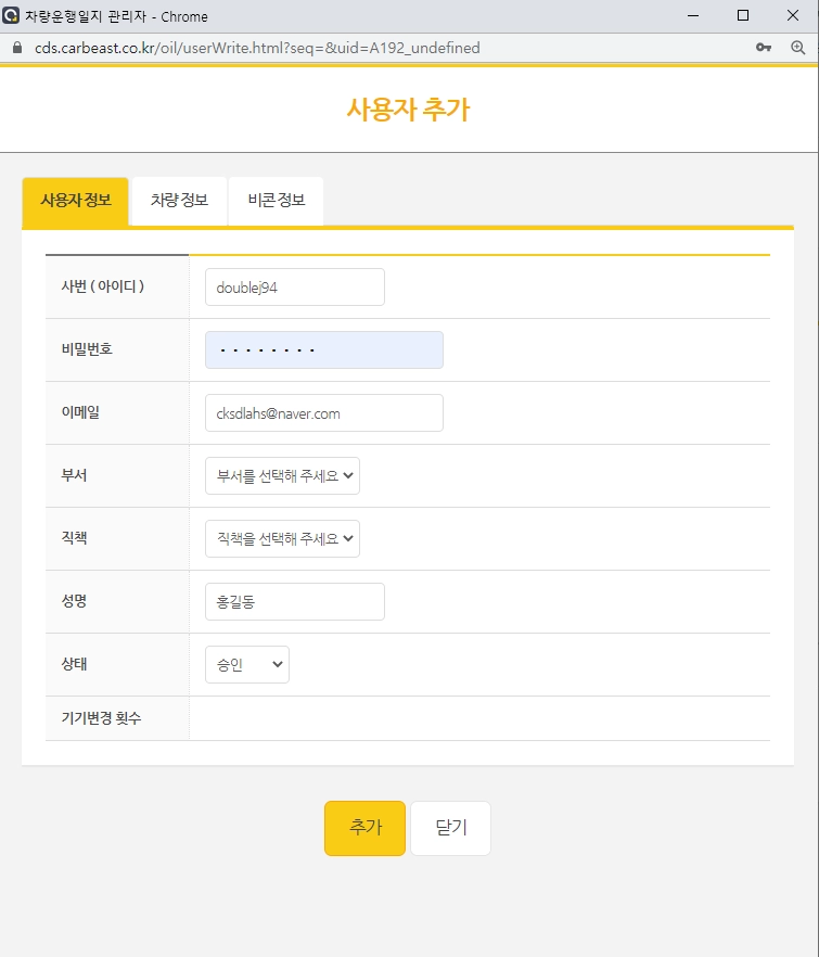 ①관리자페이지 사용자관리→사용자추가→ 직접 등록