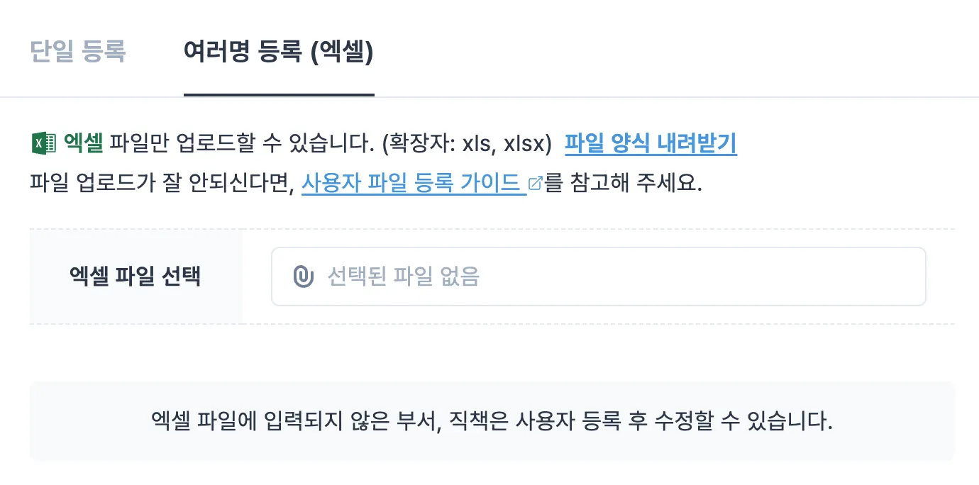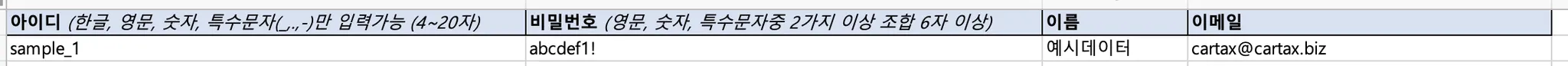 (샘플)사용자리스트.xlsx파일을 불러온 후 양식에 맞게 데이터를 입력합니다.