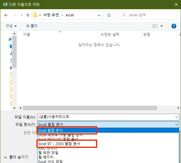 파일 → 다른 이름으로 저장 → Excel 통합 문서 혹은 Excel 97 - 2003 통합 문서 → 확인 및 저장