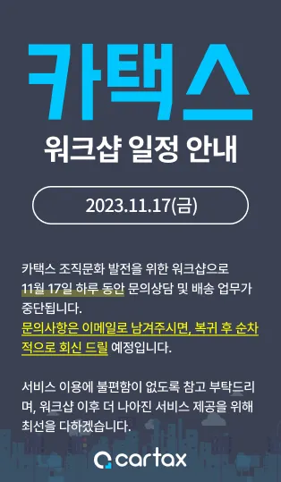 아래와 같이 카택스 조직문화 발전을 위한 워크샵으로 고객센터 운영 및 배송업무가 이루어지지 않아 사전 안내드립니다.