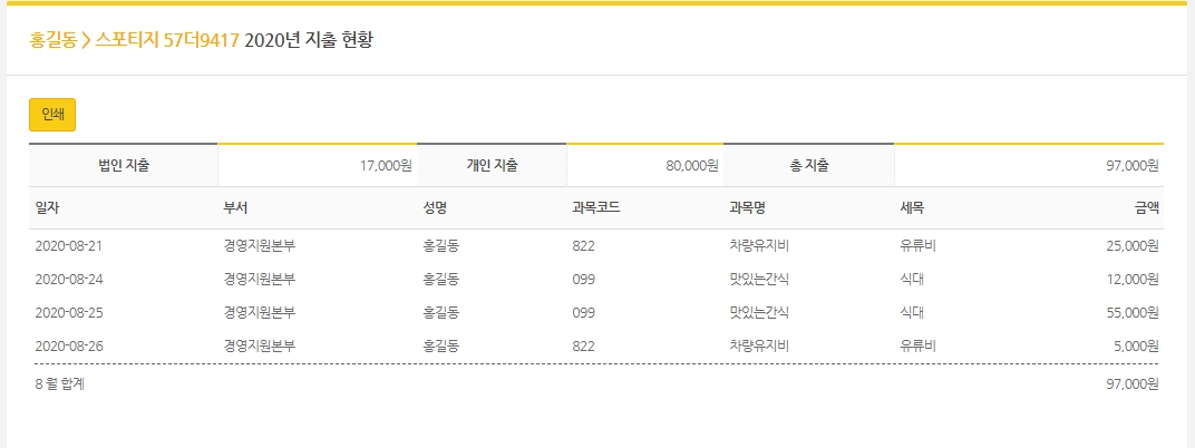 관리자 페이지에서 차량별 지출현황을 관리할 수 있어요.