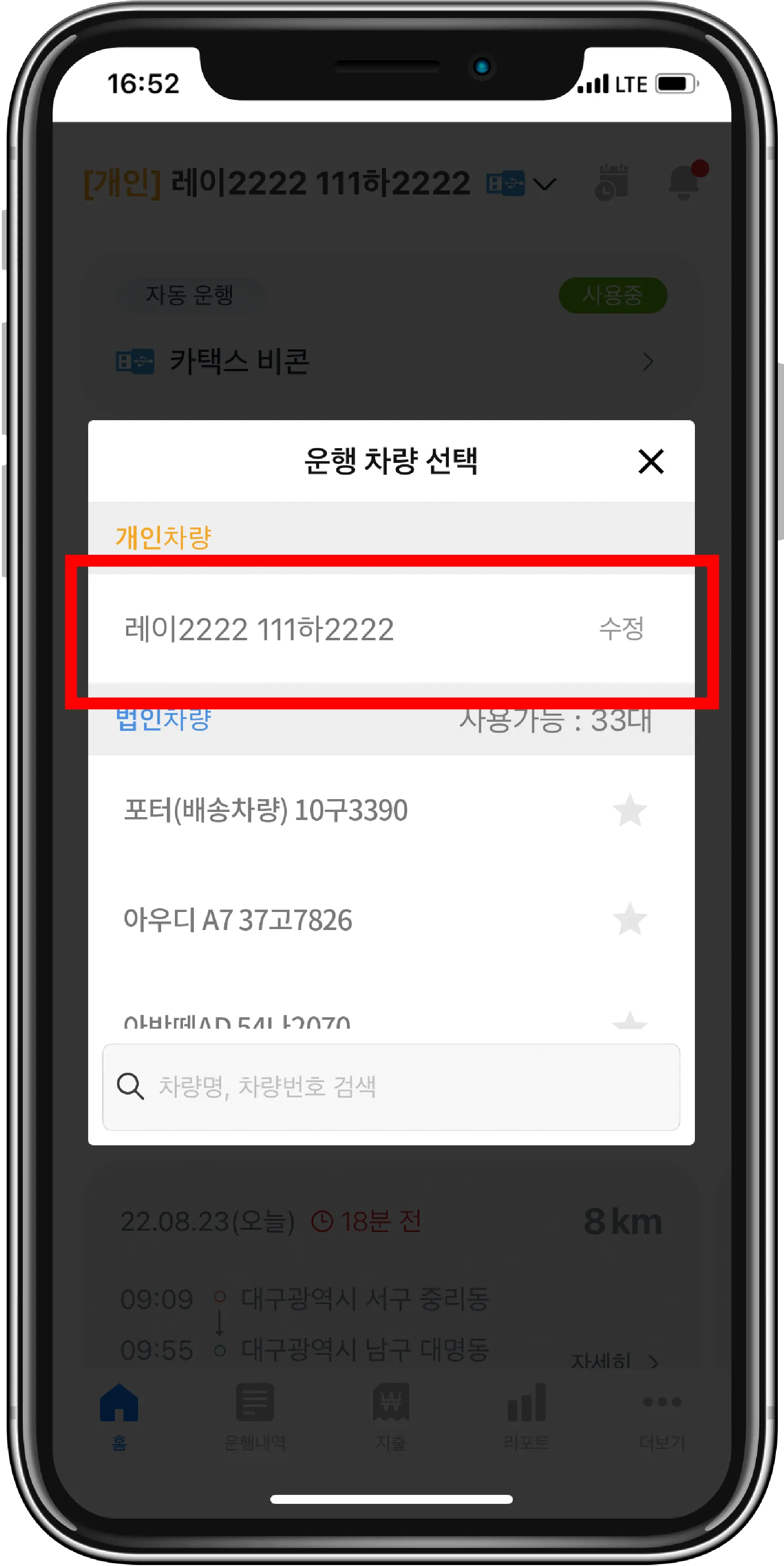 타인에게는 노출되지 않는 개인차량 구분으로 운행기록을 관리할 수 있습니다.