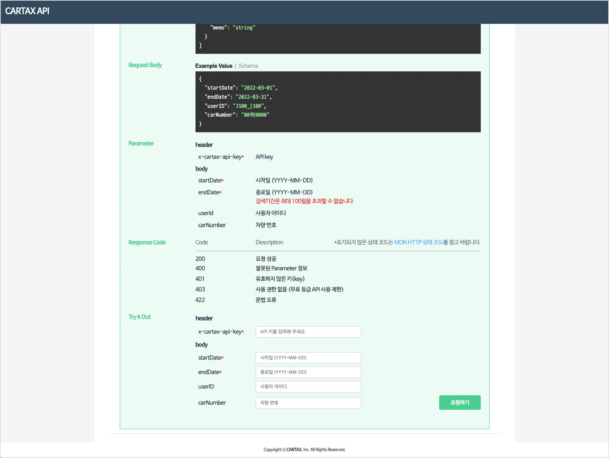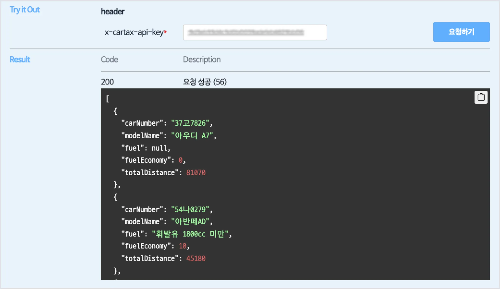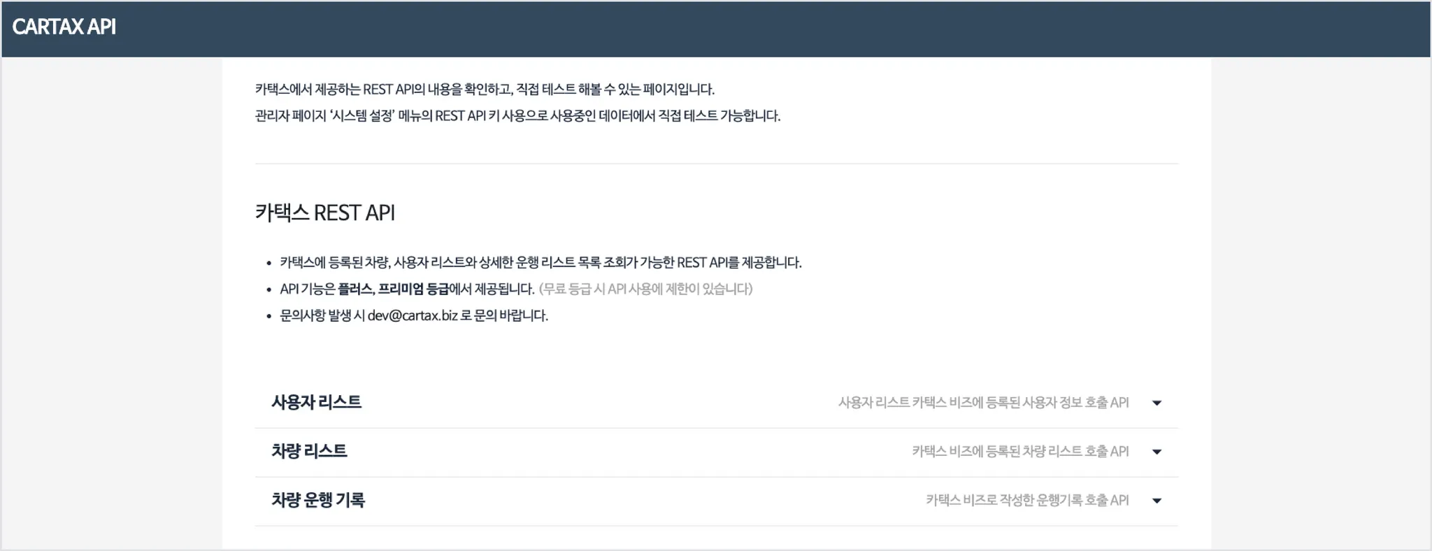 카택스에 등록된 차량, 사용자 리스트와 상세한 운행 리스트 목록 조회가 가능한 REST API를 제공합니다.