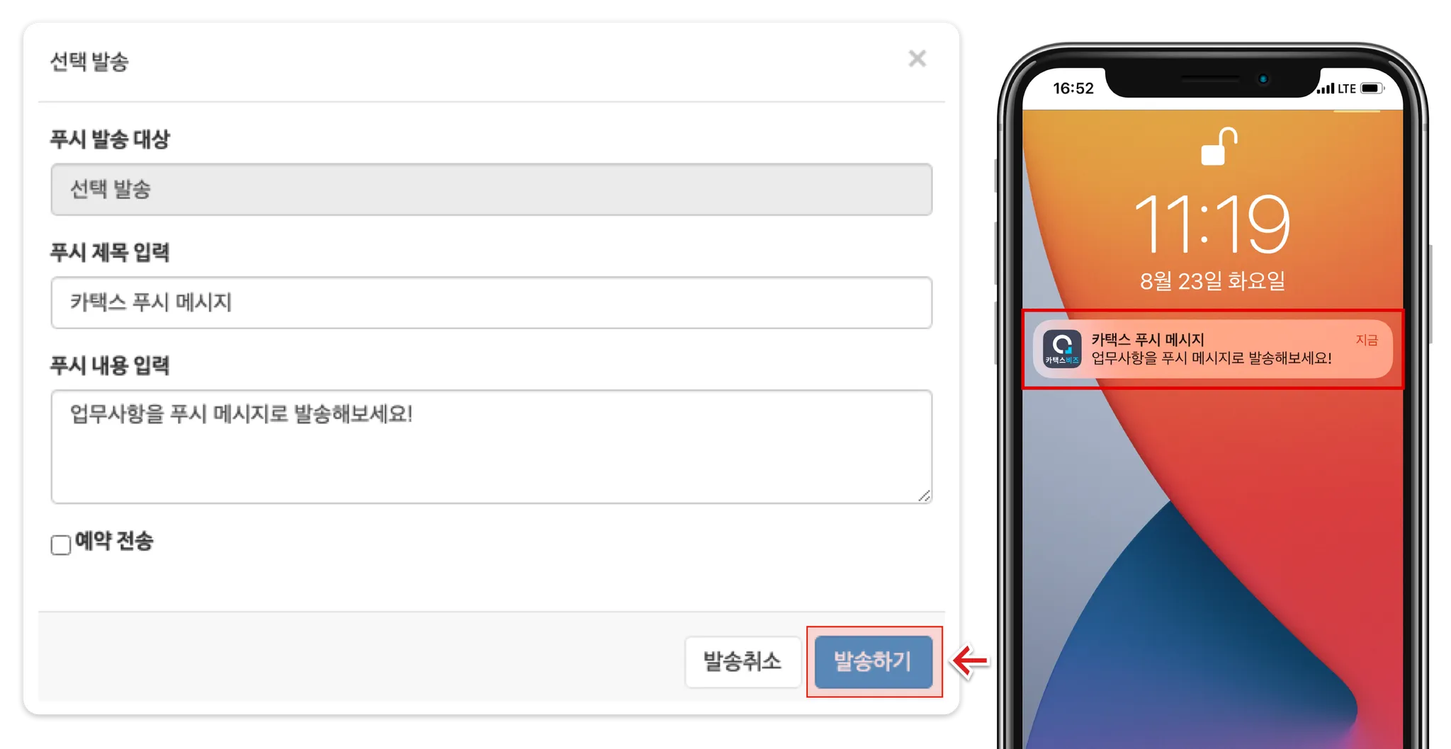 공지사항, 업무 중 발생하는 특이사항 등 일반 메시지로 공유하기 힘든 내용은, 푸시 메시지를 통해 발송해보세요!