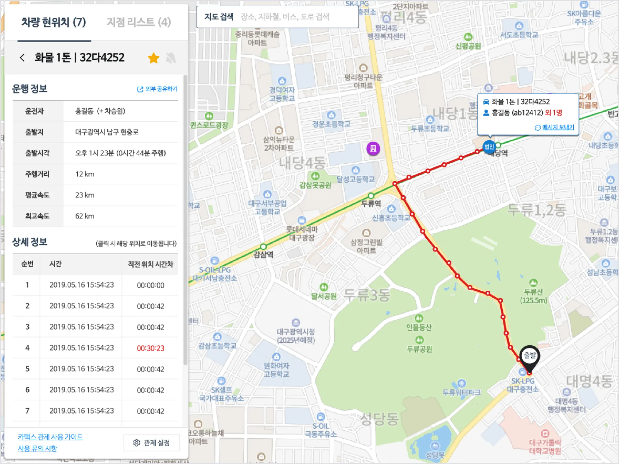 무료 등급의 경우 출/도착지 위치만 표시됩니다.
