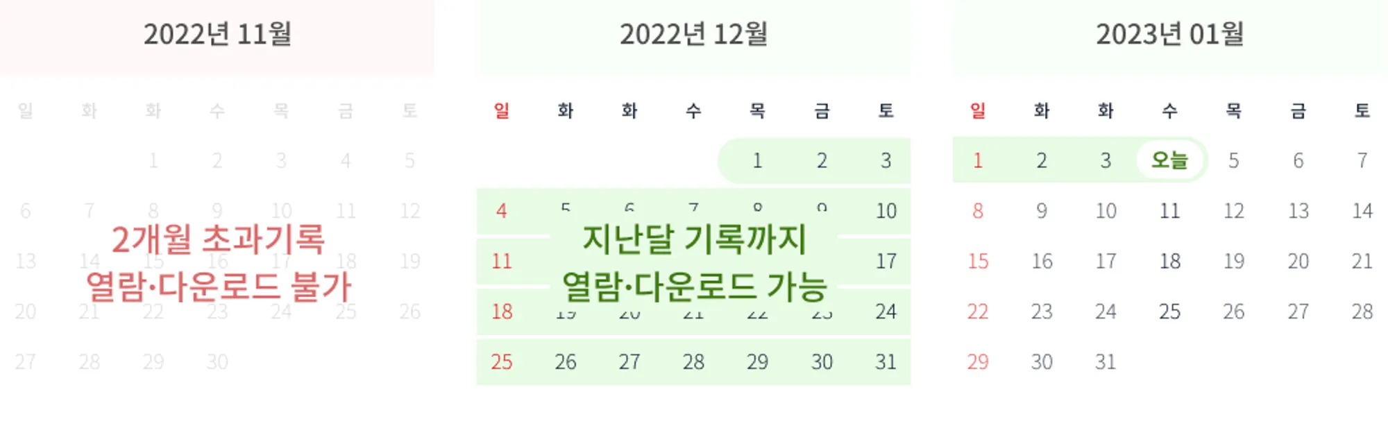 작성한 운행기록 데이터는 등급에 따라 보관기간 차이가 있습니다.