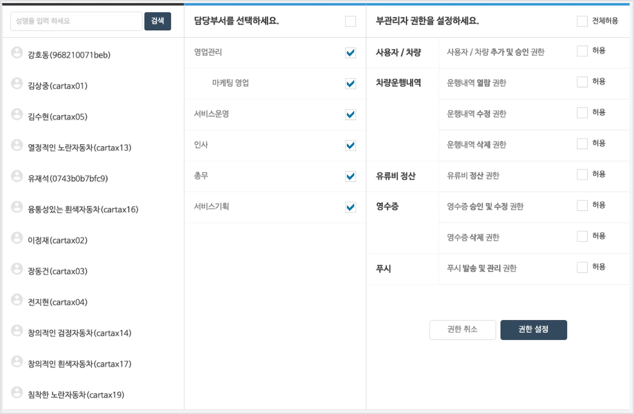 관리자페이지를 통해 법인차량 등록 후 사용 가능합니다.