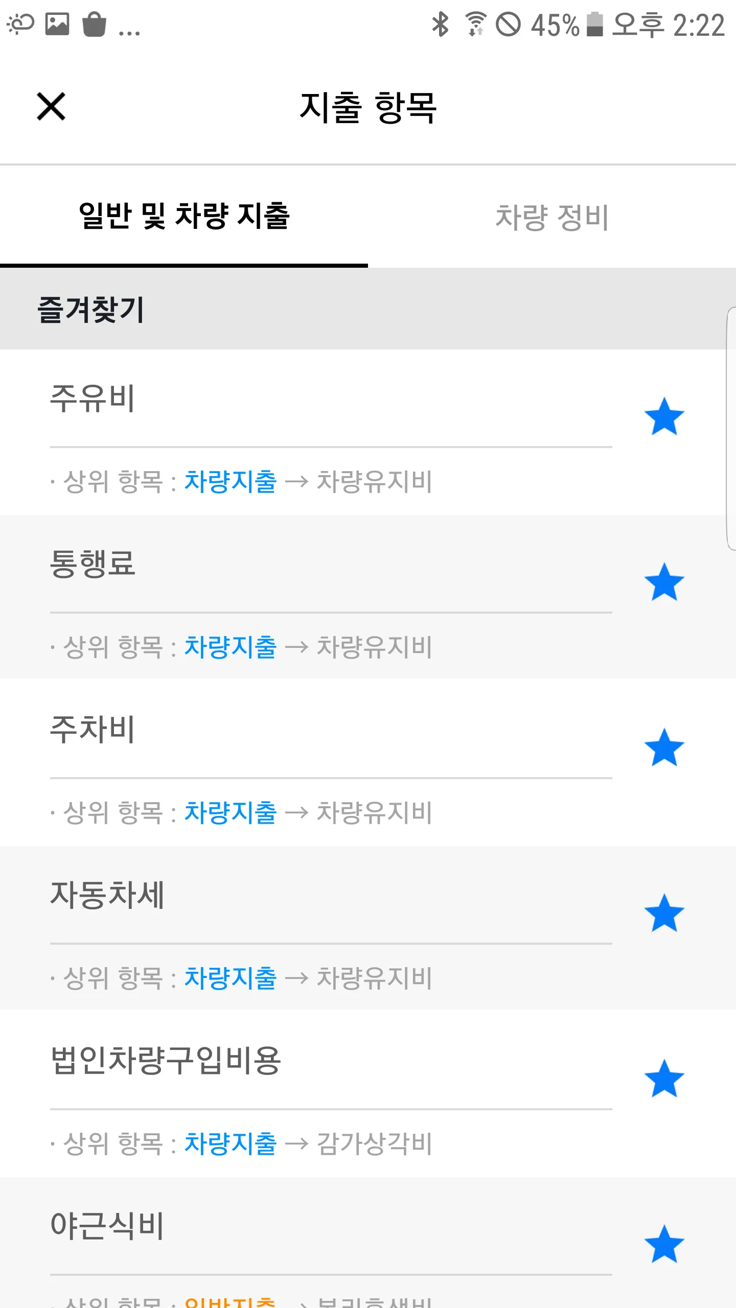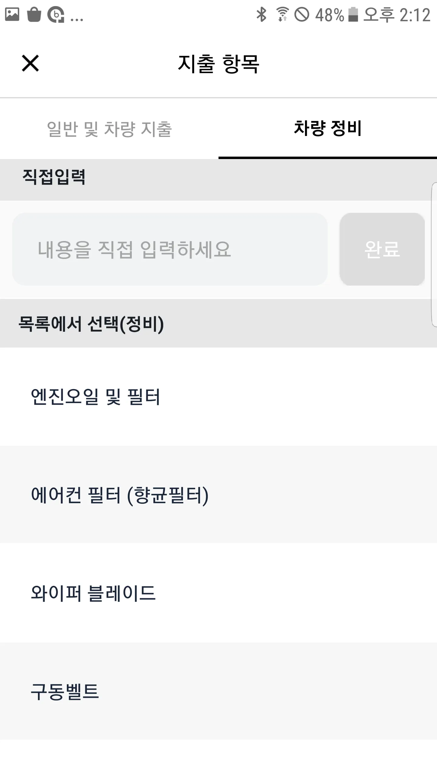정비 이외 지출일 경우 [일반 및 차량 지출] 선택