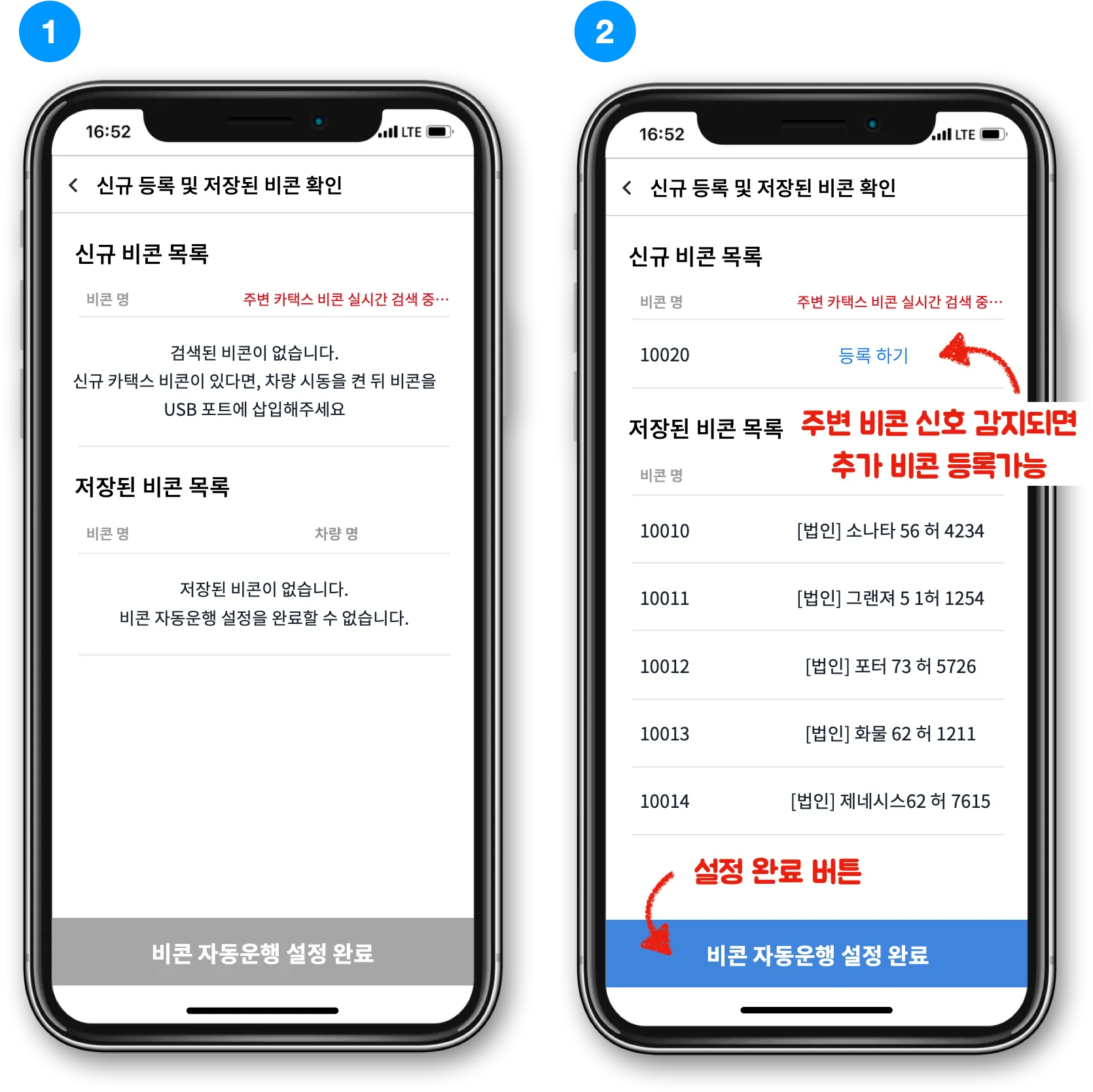 - 차량 시동 켠뒤, USB단자에 비콘 삽입
