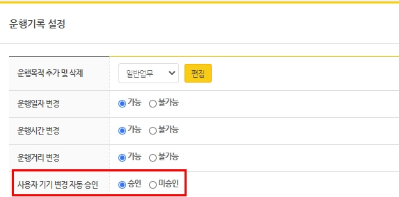 관리자페이지 시스템 설정 → 사용자 기기변경 자동승인