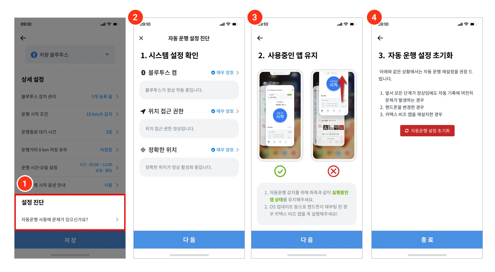 핸드폰 시스템의 잘못된 설정으로 자동운행이 시작되지 않거나, 올바른 주행거리가 작성되지 않는 등 문제가 발생할 수 있습니다.