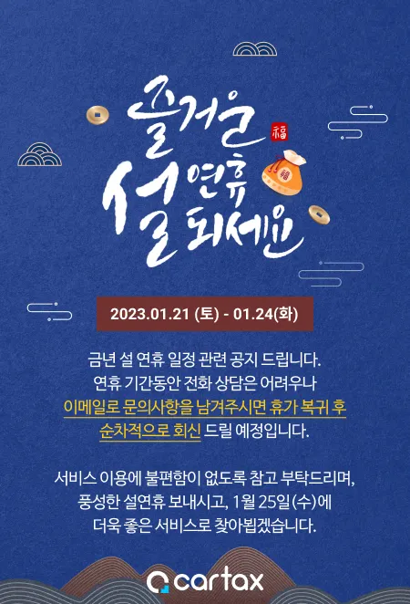 이번 2023년 설을 맞이함에 따라 연휴기간 고객센터 운영 일정에 대해 아래와 같이 안내드립니다.