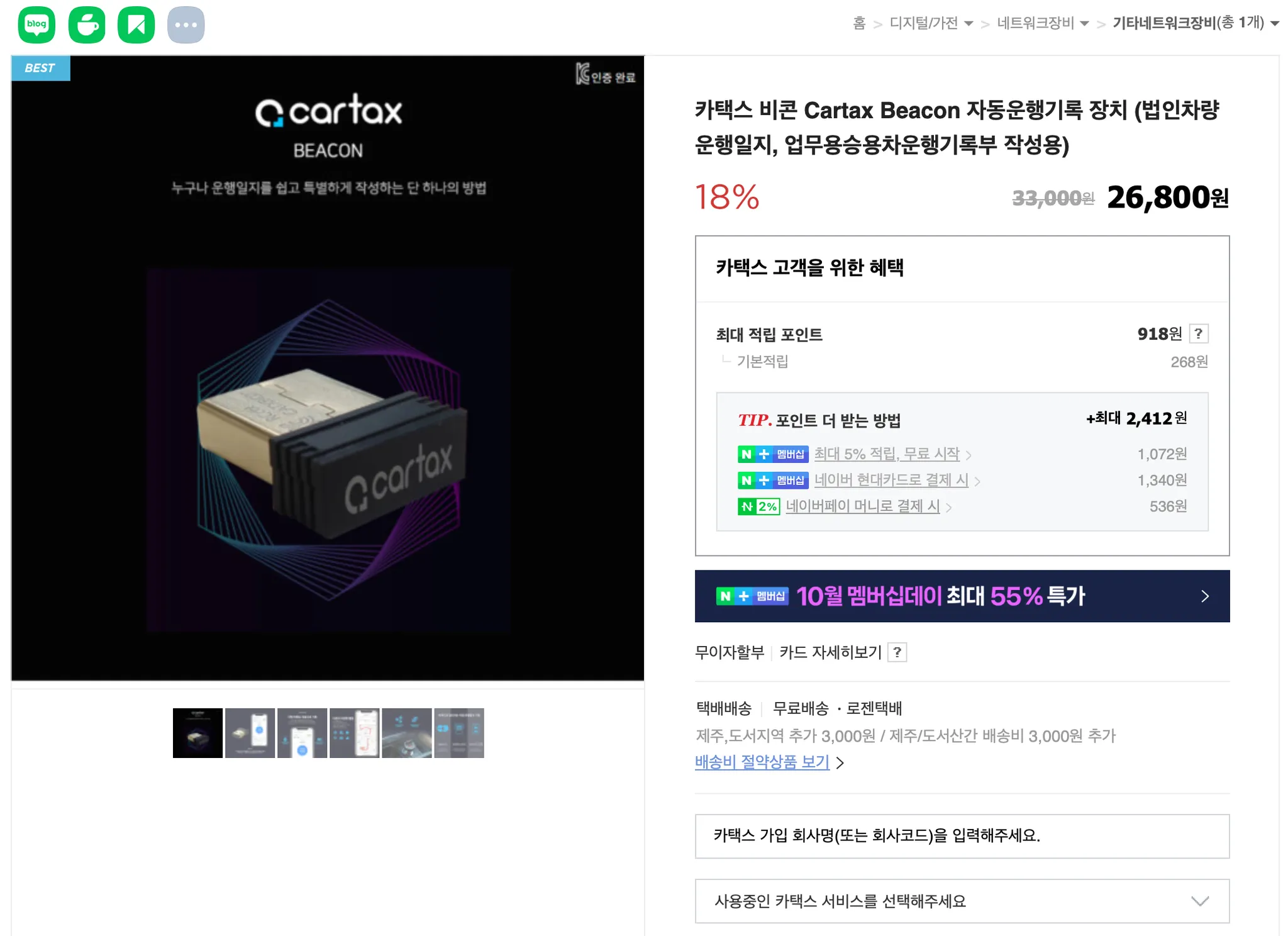 카택스 비콘 개당 26,800원으로, 배송비 무료입니다.