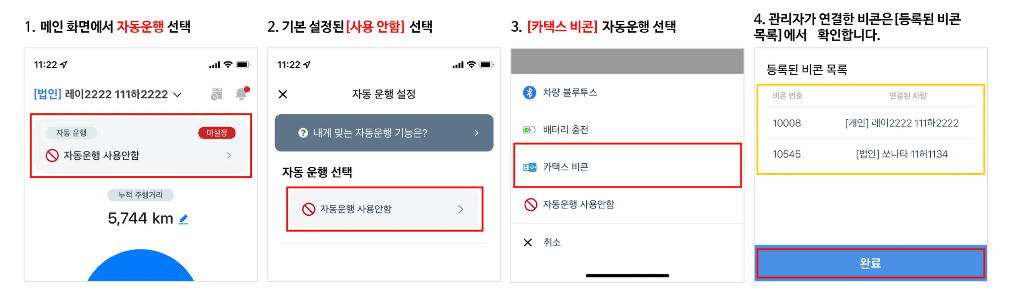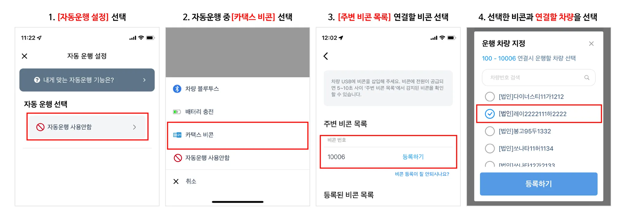 ③ 연결할 차량 선택하기 → ④ 연결할 비콘 선택하여