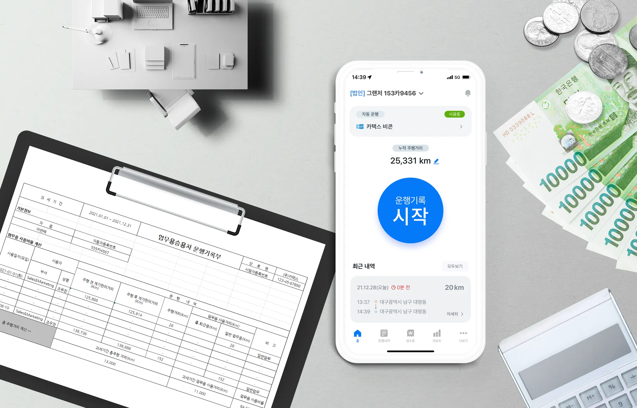 스마트폰 앱만으로 운행 내역을 기록하고, 기록된 운행 내역을 바탕으로