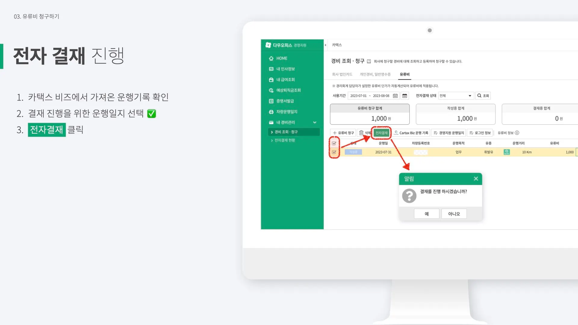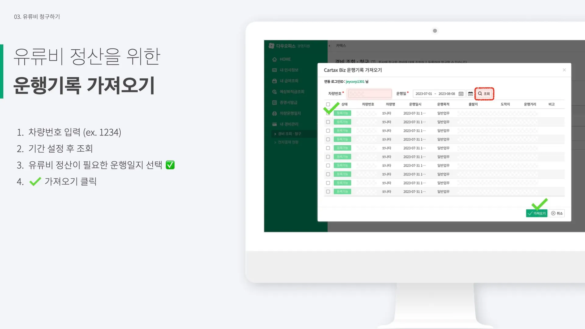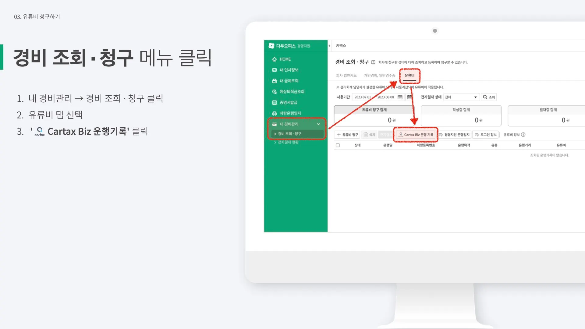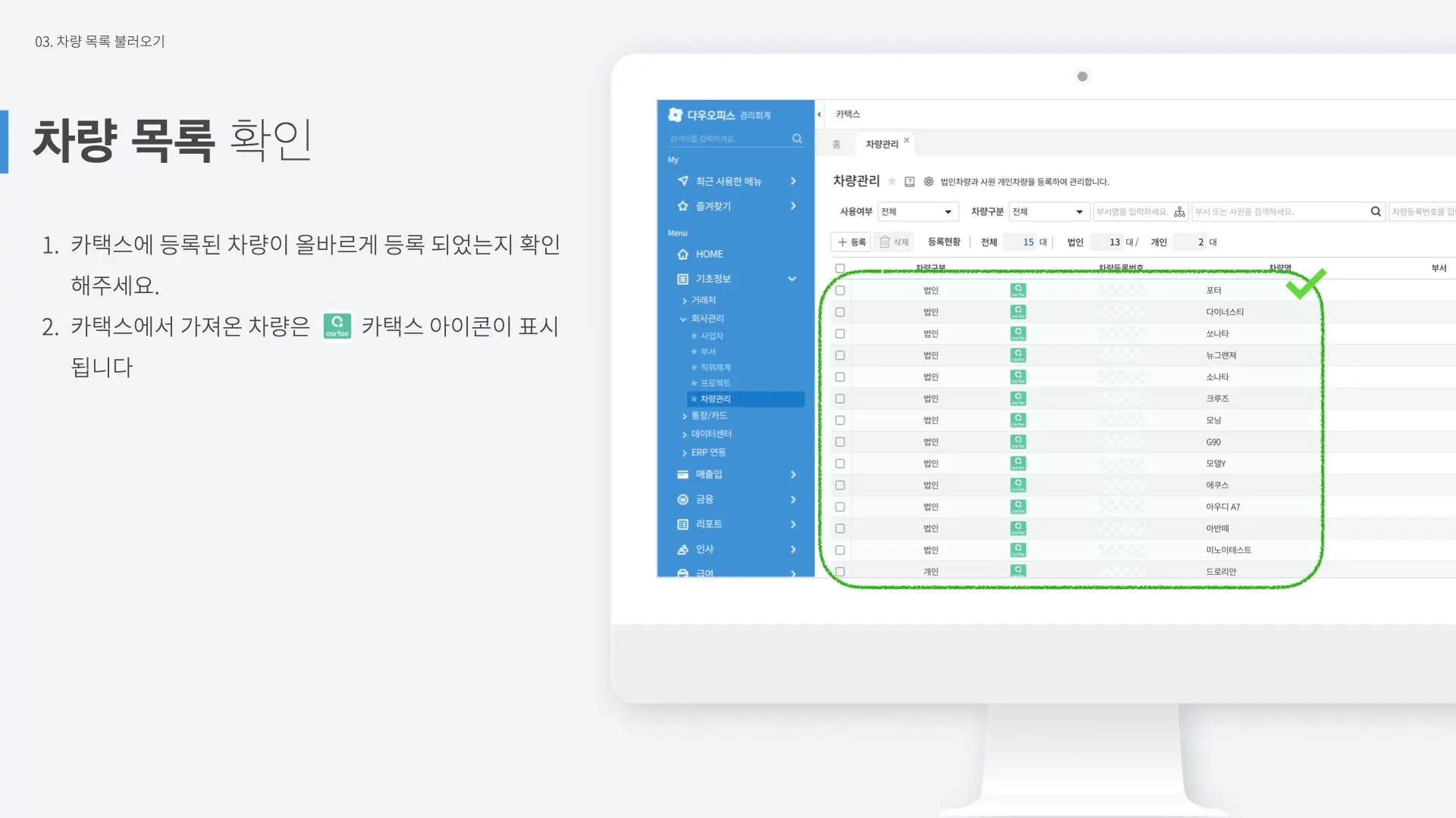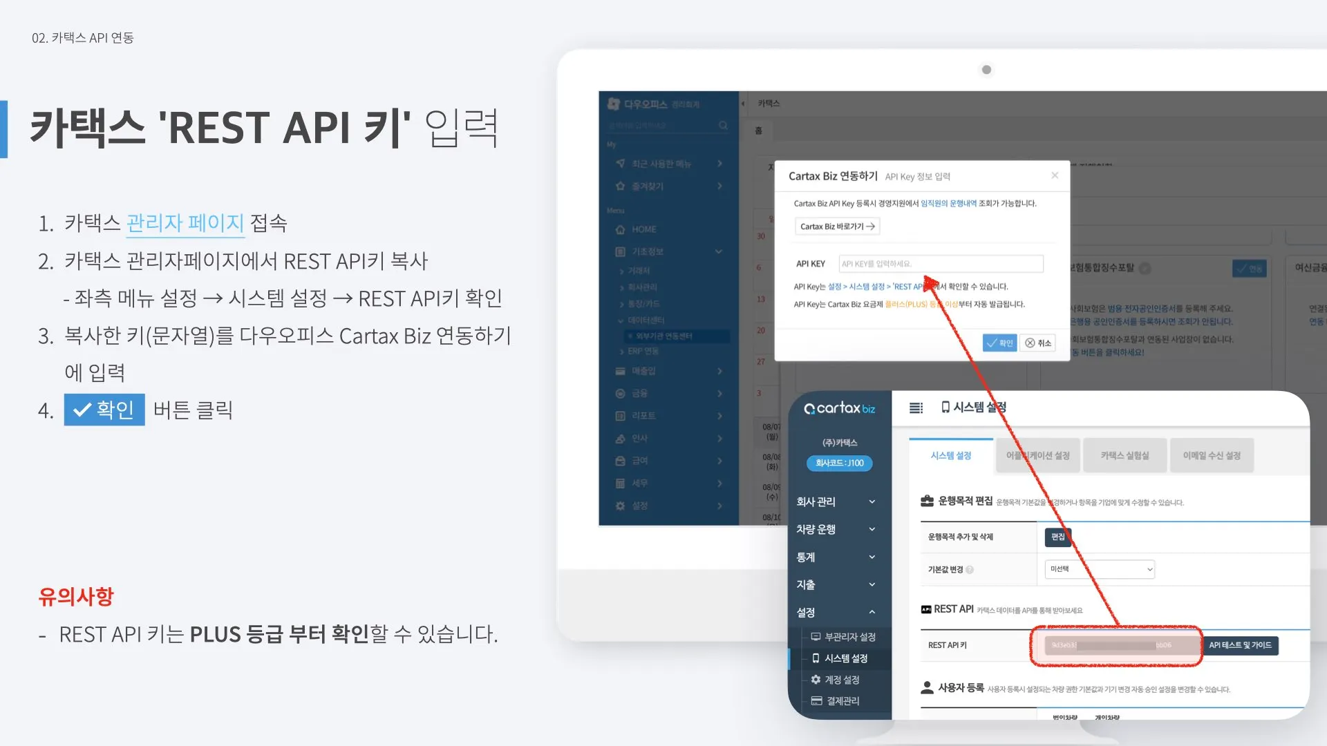 카택스 REST API 키를 활용하여 카택스에서 작성한 운행기록을 다우오피스 경영지원 서비스에서 바로 확인하실 수 있습니다!