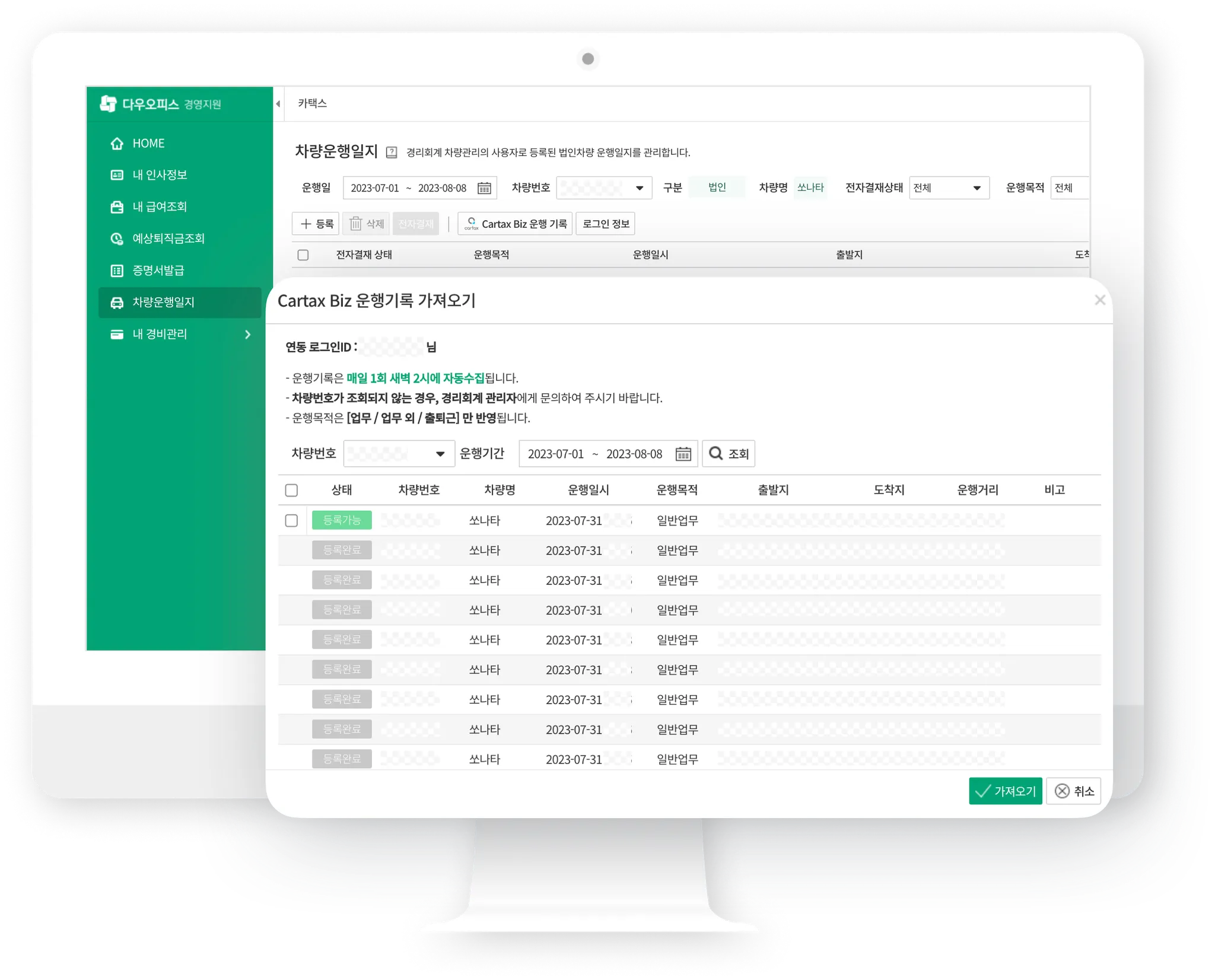 올인원 업무플랫폼 ‘다우오피스’와 차량운행일지 ‘카택스 비즈’의 연동 기능 소개!