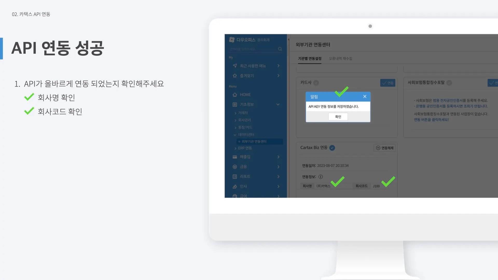 쉽고 간단하게 API키 등록으로 카택스에서 작성한 운행기록을 다우오피스에서 확인해보세요!